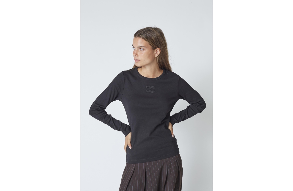 Co Couture GrannyCC longsleeve 33180. Dit aangesloten model heeft een ronde hals en lange mouwen. Deze zwarte longsleeve van Co Couture is bewerkt met een 'CC' -logo op de voorzijde.