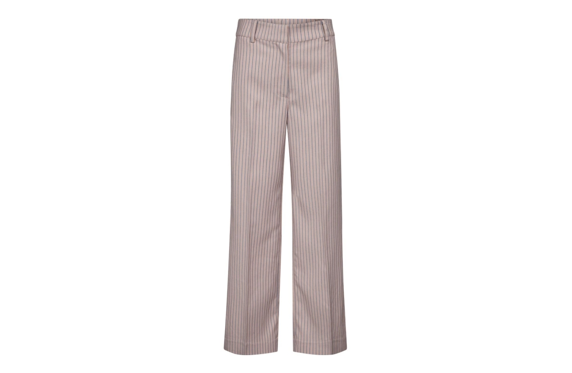 Co Couture SalvieCC Wide LL Pant Rosa. Dit wide-leg model sluit door middel van een blinde sluiting, rits en heeft ceintuurlussen. Deze lichtroze pantalon van Co Couture heeft steekzakken, paspelzakken achter en is all-over bewerkt met een blauw-streeppatroon. Dit model heeft een bijpassende top.