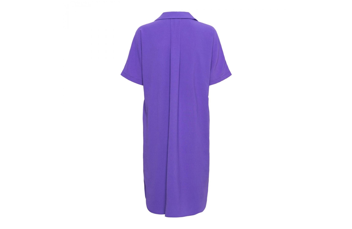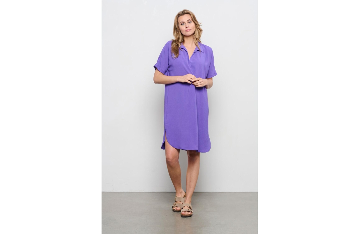 &Co Woman jurk Alison. Dit wijdvallende model is voorzien van een v-hals en kraag en heeft korte mouwen. Deze kobalt blauwe jurk van &Co Woman is voorzien van een kleine vleermuismouw en loopt rond aan de onderzijde.