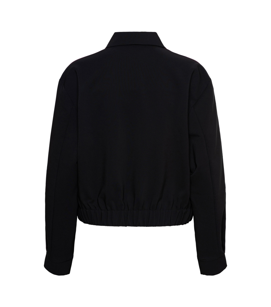 Co Woman FAITH 56050 a-black. Dit sportieve model is voorzien van een kraag en heeft lange mouwen. Dit zwarte jasje van &Co Woman sluit door middel van een rits. Dit model is bewerkt met een bordeaux/gouden tape op de mouw.