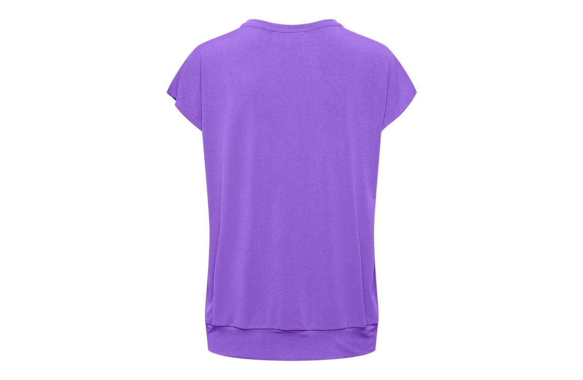 &Co Woman shirt Lucia TO190. Dit soepelvallende model heeft een v-hals, korte mouwen en heeft een elastische boord aan de onderzijde. Dit paarse shirt van &Co Woman is uitgevoerd in een comfortabel materiaal.