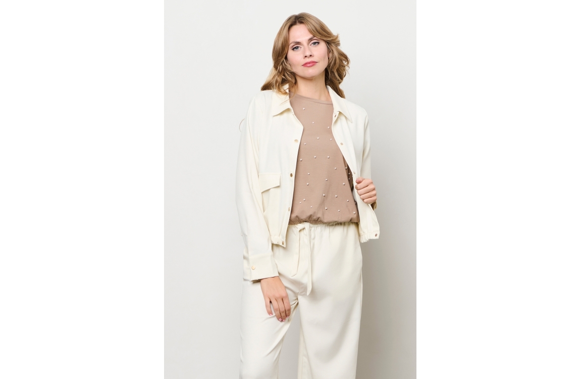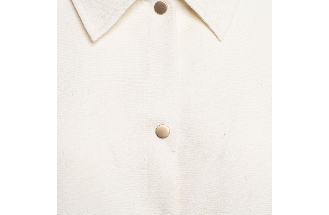 &Co Woman jasje Nadia JA153. Dit rechtvallend model is voorzien van een kraag en heeft lange mouwen. Dit beige linnen jasje van &Co Woman sluit door middel van knopen en beschikt over twee klepzakken.