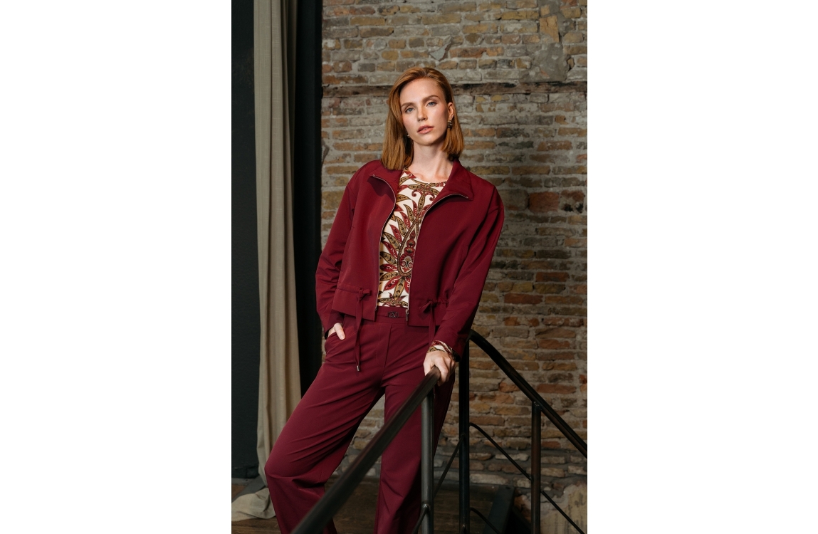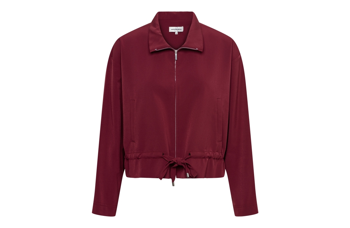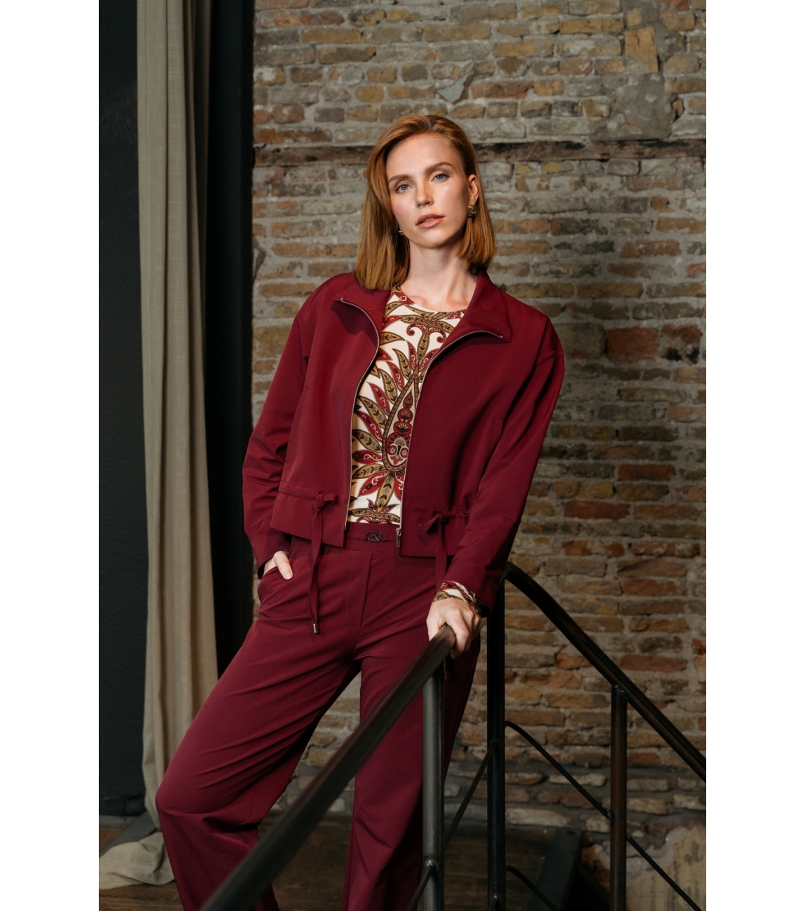 &Co Woman jasje Paiva Travel JA141. Dit wijdere model is voorzien van een kraag en heeft lange mouwen. Dit rode jasje van &Co Woman sluit door mdidel van een rits en beschikt over een trekkoord aan de onderzijde. Dit model heeft twee steekzakken.