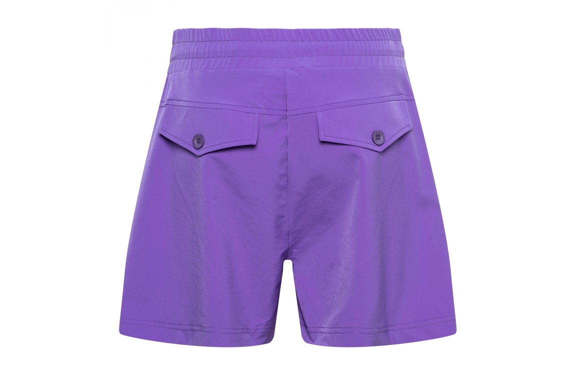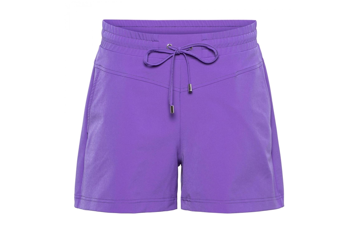&Co Woman short Penny. Dit rechtvallende model heeft een elastische band voorzien van een strikkoord en heeft korte pijpen. Deze paarse kortebroek van &Co Woman is afgewerkt met twee schuine steekzakken aan de voorzijde en twee klepzakken aan de achterzijde. Dit model is uitgevoerd in de welbekende travel kwaliteit.