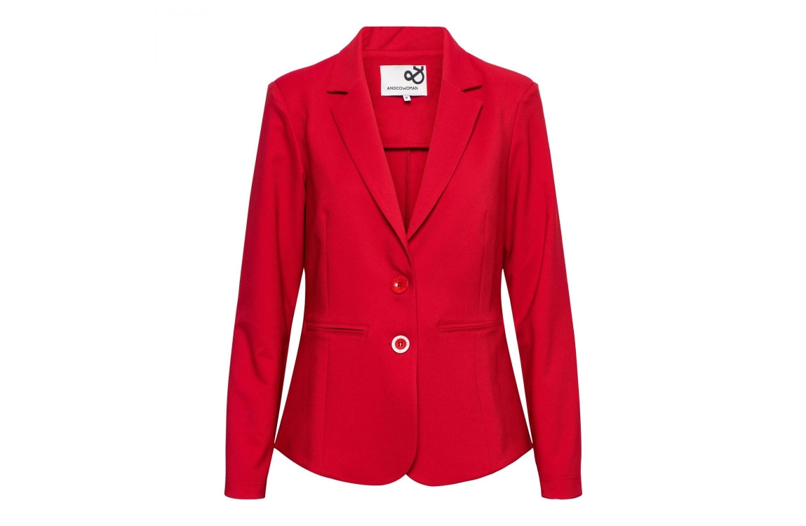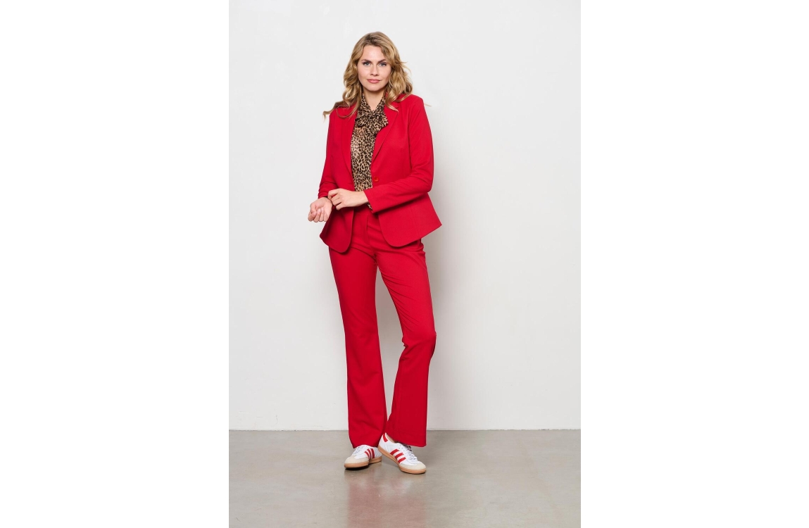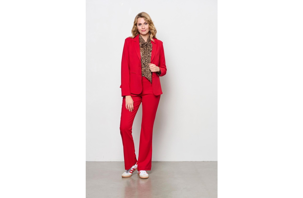 &Co Woman blazer Phileine BZ147. Dit getailleerd model is voorzien van een reverskraag en heeft lange mouwen. Deze rode blazer van &Co Woman sluit door midde van een knoop en beschikt over paspelzakken.