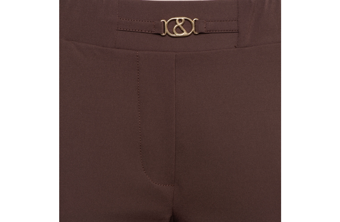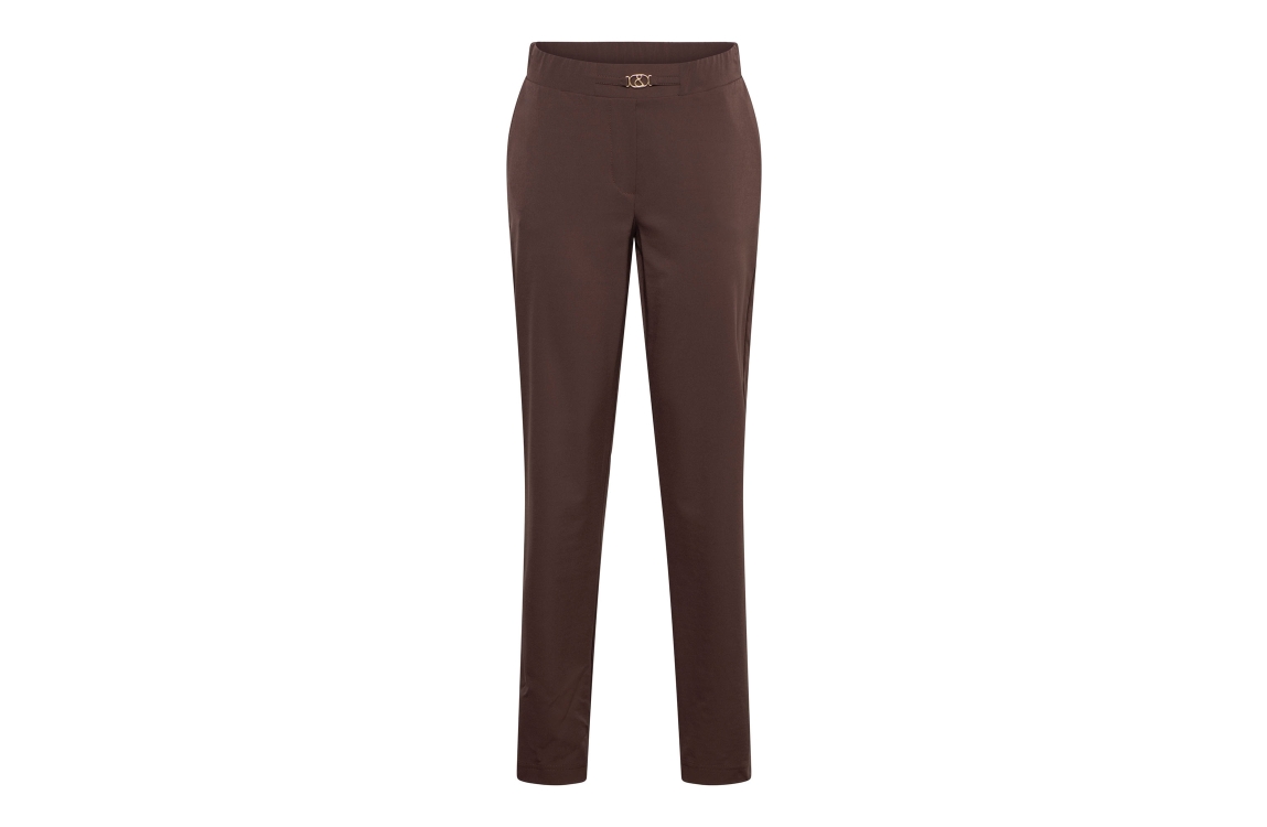 Co Woman POLA TRAVEL 55041 e-chocolate. Dit rechtvallende model sluit door middel van een elastische band. Deze bruine broek van &Co Woman is voorzien van steekzakken aan de voorzijde, twee opgestikte zakken met klep op het achterpand. Dit model heeft een gesp detail in de tailleband. Combineer deze broek met de bijpassende blazer van &Co Woman.