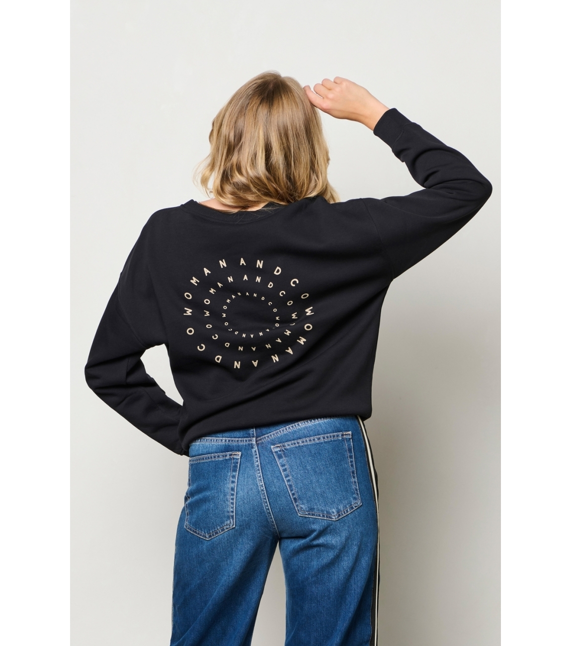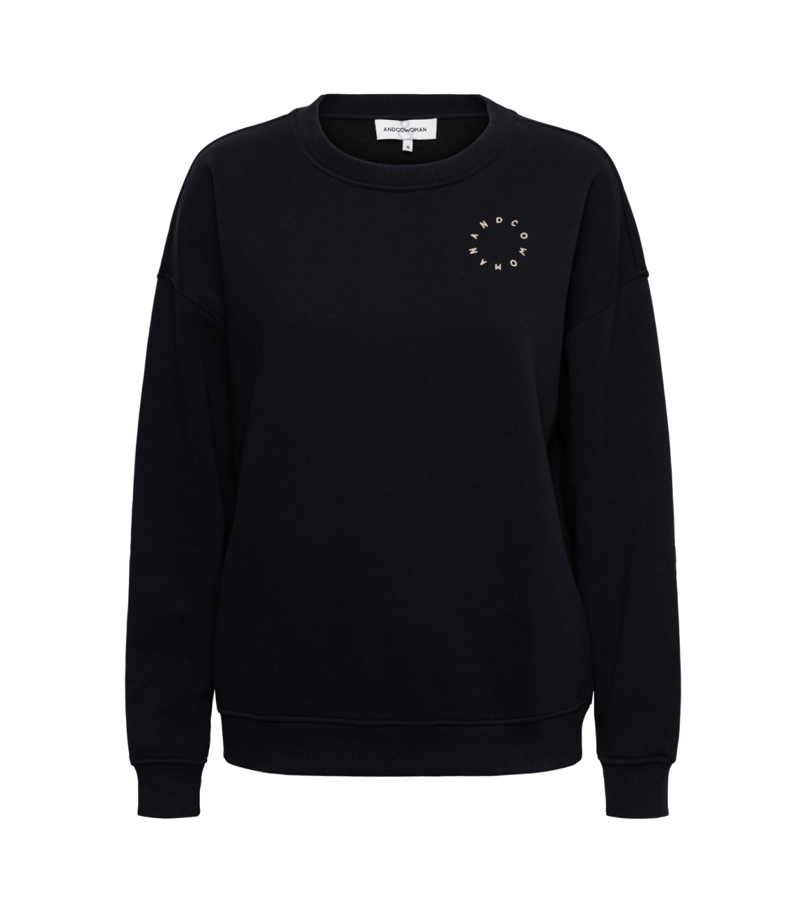 &Co Woman sweater Silya SW129. Dit rechtvallend model is voorzien van een ronde hals en heeft lange mouwen. Deze zwarte sweater van &Co Woman is aan de voor- en achterzijde bewerkt met het logo.