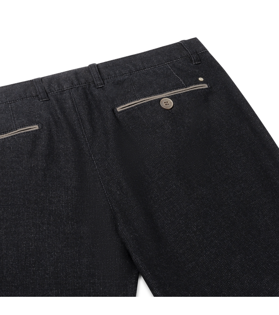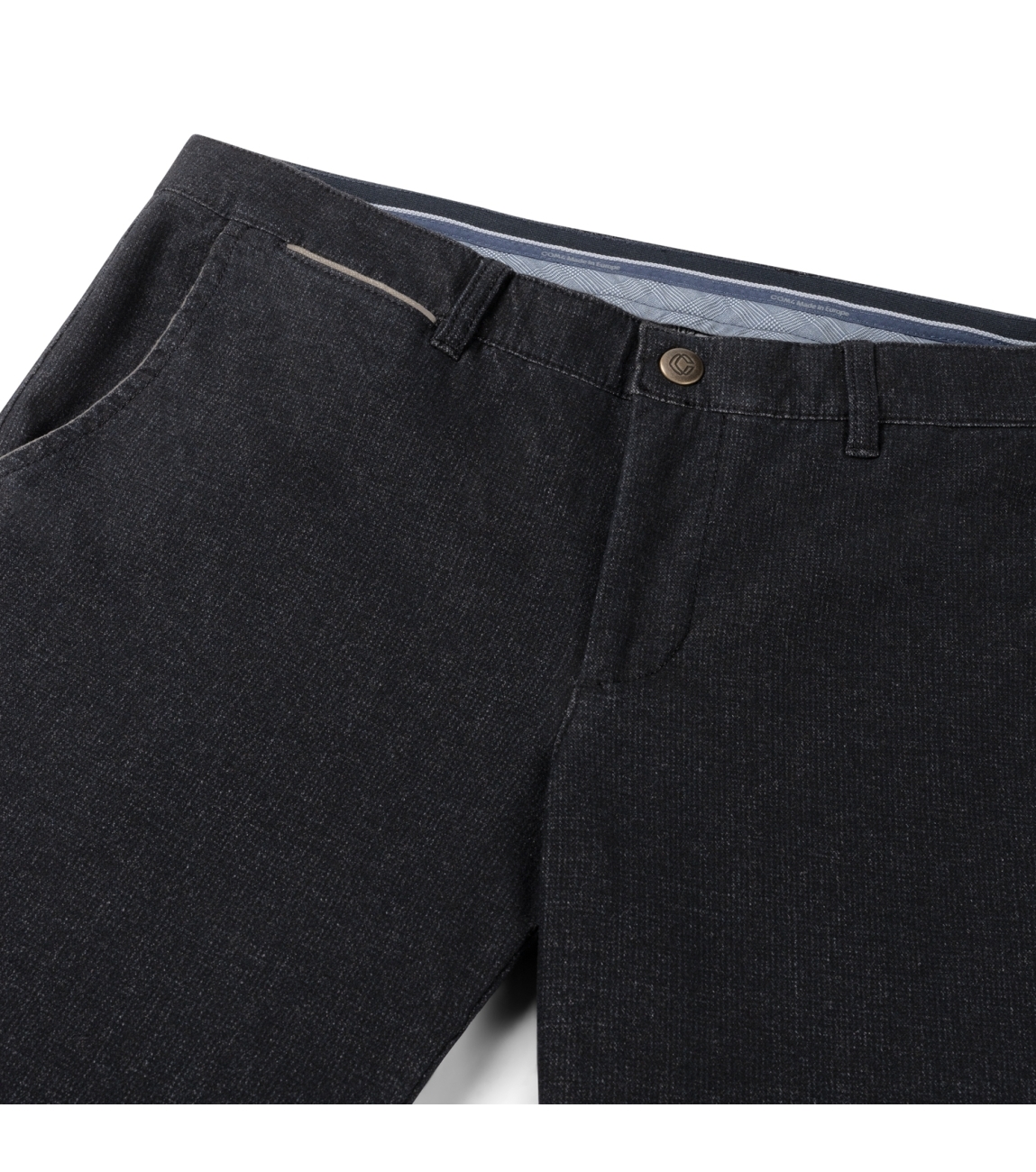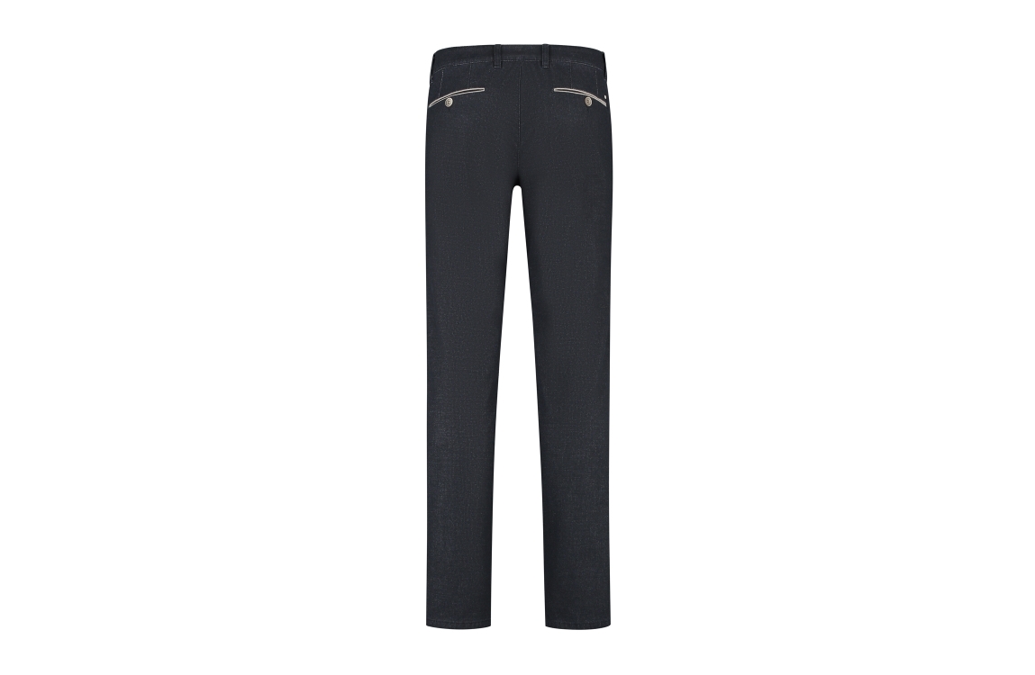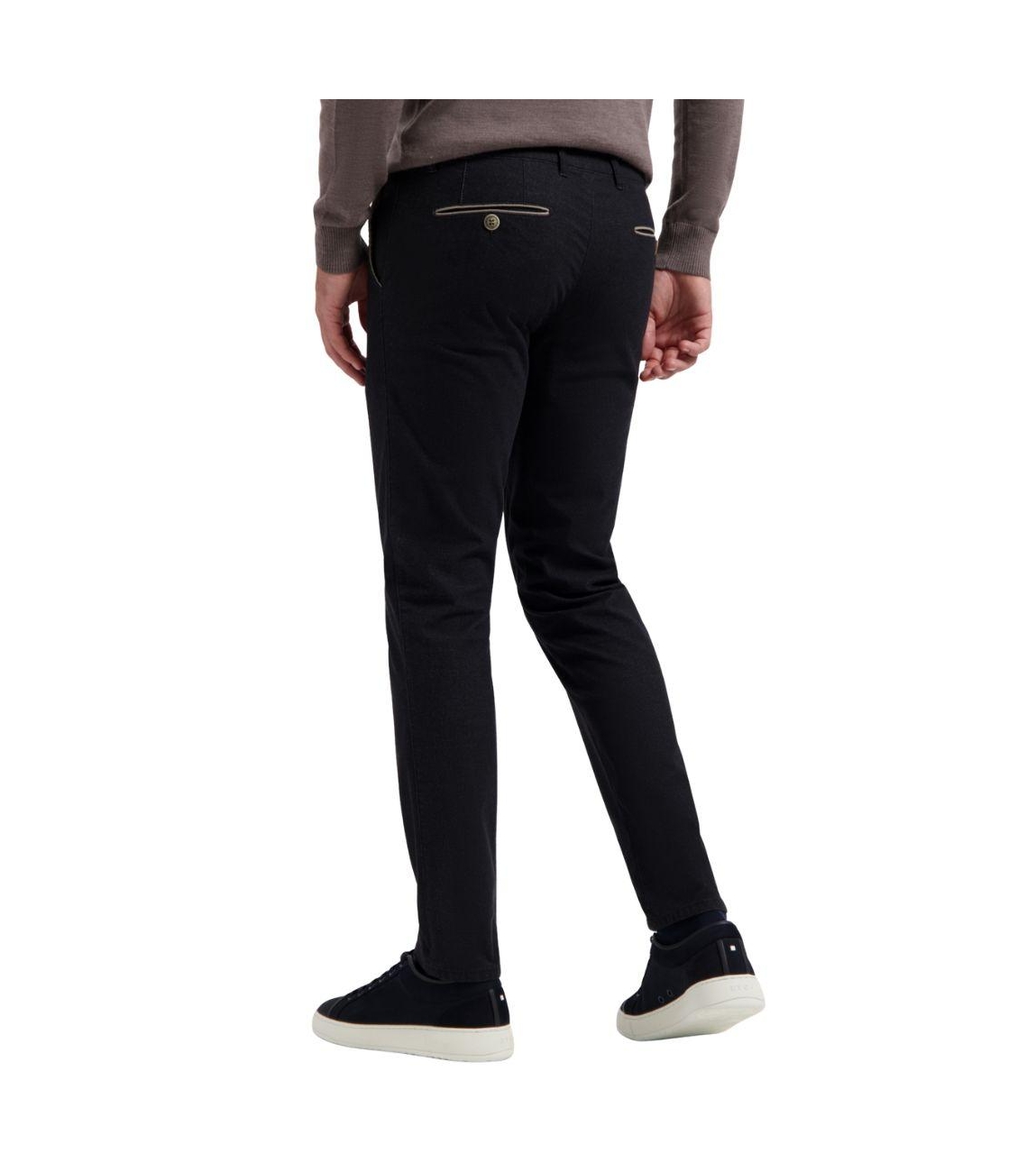 Com4 broek Modern Chino 21282114 412. Dit regular fit model sluit door middel van een knoop- en ritssluiting en is voorzien van ceintuurlussen. Deze donkerblauwe broek van Com4 is voorzien van twee gedetailleerde steekzakken aan de voorzijde en twee paspelzakken aan de achterzijde.