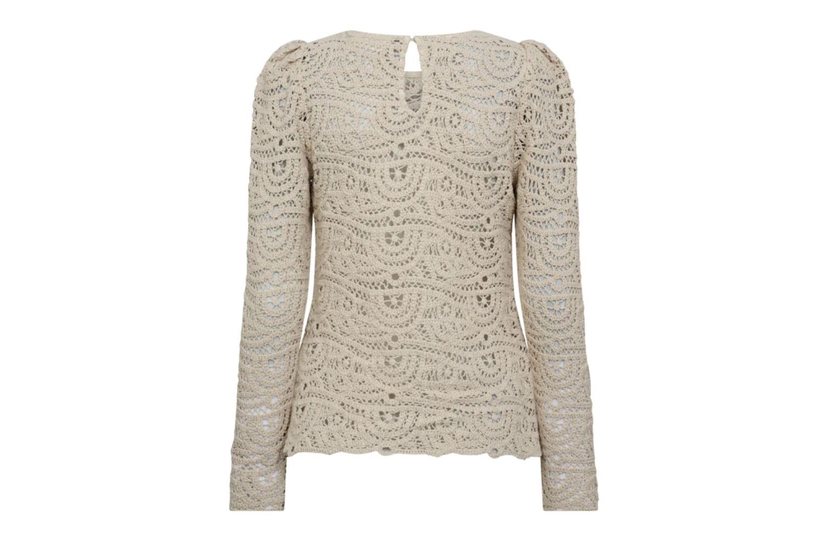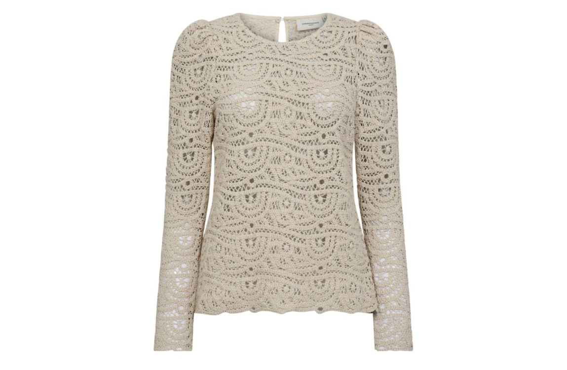 Copenhagen Muse top 205865 cmkarla. Dit rechtvallend model is voorzien van een ronde hals en heeft lange pofmouwen. Deze beige gehaakte top van Copenhagen Muse sluit aan de achterzijde door middel van een knoopje.
