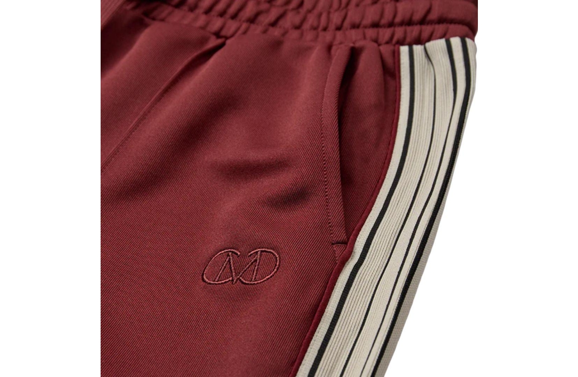 Copenhagen Muse broek 205551 1318. Dit wide leg model sluit door middel van een elastische boord met trekkoord. Deze donkerrode broek van Copenhagen Muse is voorzien van twee zijzakken en is gedetailleerd met een geborduurd logodetail en ingestikte plooien. Het model heeft een hoge taille en is aan de zijkanten bewerkt met een sportieve streep.