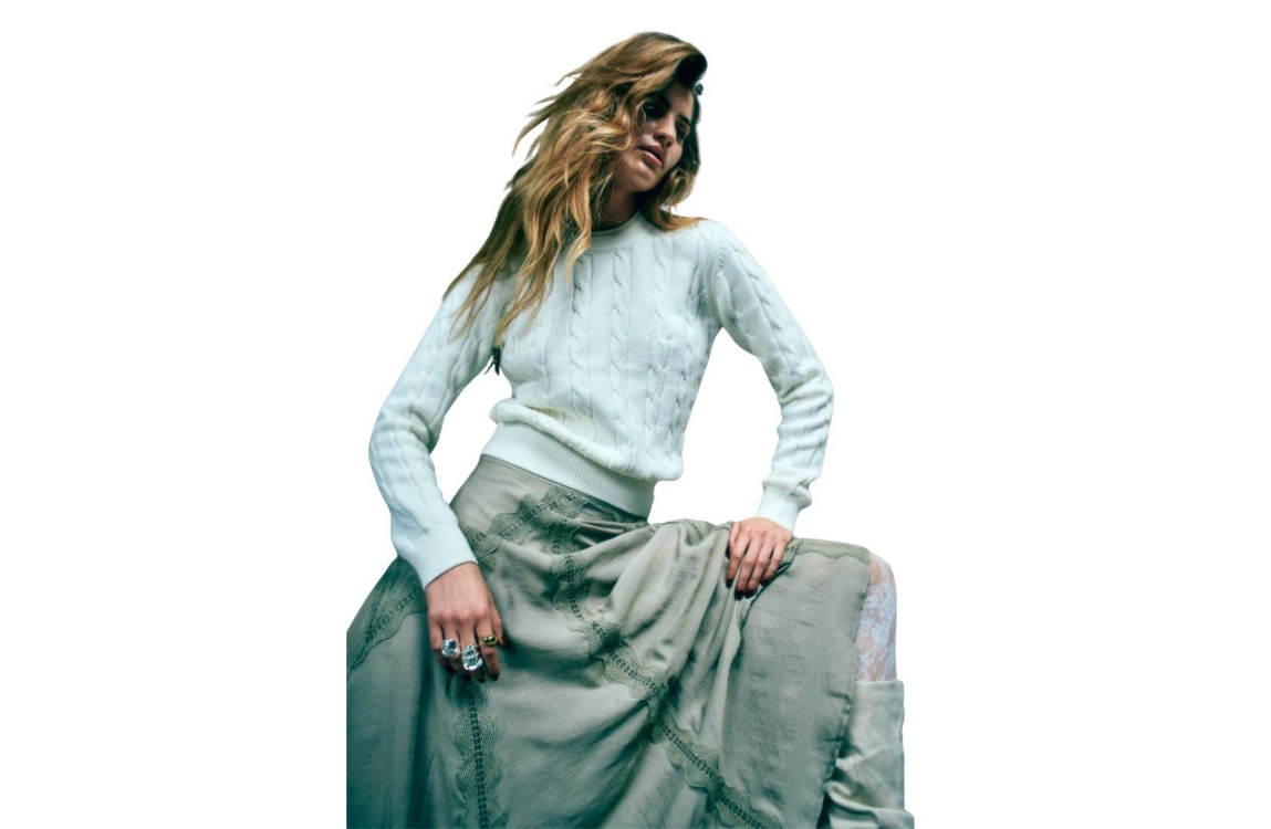 Copenhagen Muse pullover 206592 8273. Dit rechtvallende model heeft een ronde, dubbele halslijn en lange mouwen. Deze off white pullover van Copenhagen Muse is uitgevoerd met een kabelpatroon en is op de linkerborst gedetailleerd met het merkembleem. Het model heeft ribgebreide boorden.