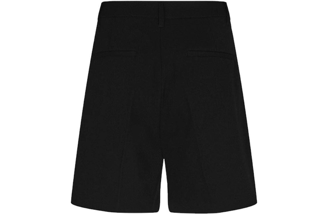 Copenhagen Muse short Tailor. Dit rechtvallend model sluit door middel van een knoop en een rits afgewerkt met ceintuurlussen. Deze zwarte short van Copenhagen Muse is voorzien van twee steekzakken aan de voorzijde en twee decoratieve paspelzakken aan de achterzijde. Dit model is bewerkt met plooidetails.