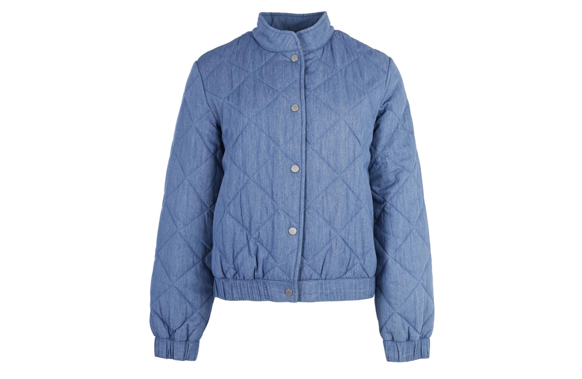 Covered Jacket DAVINA 0526 Light blue. Dit rechtvallende model is voorzien van een opstaande kraag en heeft lange mouwen. Deze blauwe jas van Covered sluit door middel van een drukknoopsluiting.