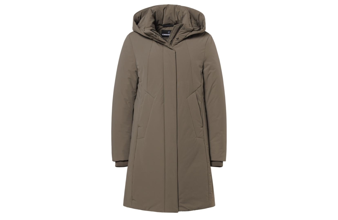Creenstone Alexandra winterjas CSN0130253. Dit rechtvallende model heeft een capuchon en lange mouwen. Deze donkergroene winterjas van Creenstone sluit door middel van een rits en knopen en beschikt over verschillende jaszakken.