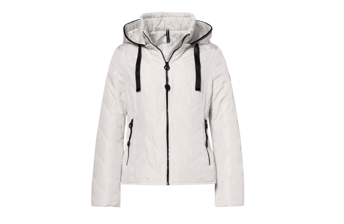 District jas Bluebell 8010 off white. Dit rechtvallend model is voorzien van een afneembaar capuchon met trekkoorden en heeft lange mouwen. Deze off white jas van District sluit door middel van een rits en beschikt over twee ritszakken. Dit model is bewerkt met het merkembleem op de schouder.