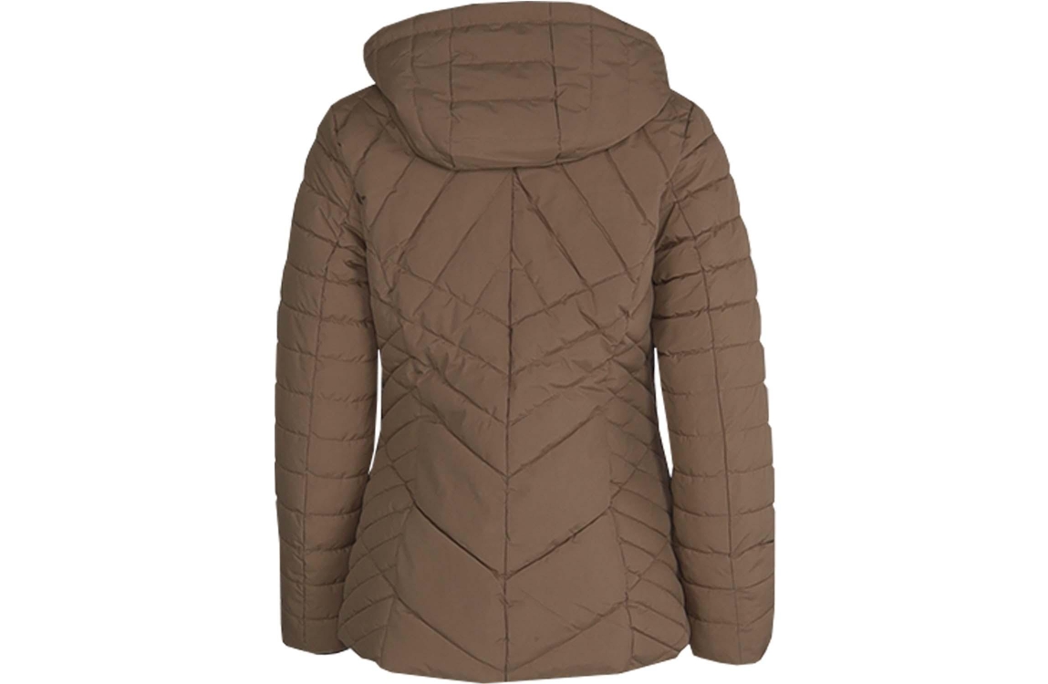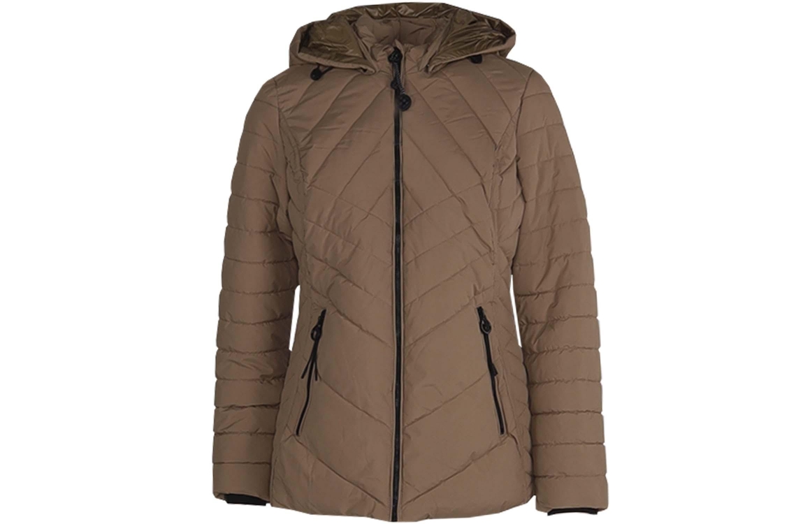District jas LM10310243/777. Dit rechtvallende model heeft een afneembare capuchon, lange mouwen en sluit door middel van een rits. Deze taupe kleurige jas van District is voorzien van verschillende zakken en afgewerkt met trekkoorden aan de bovenzijde