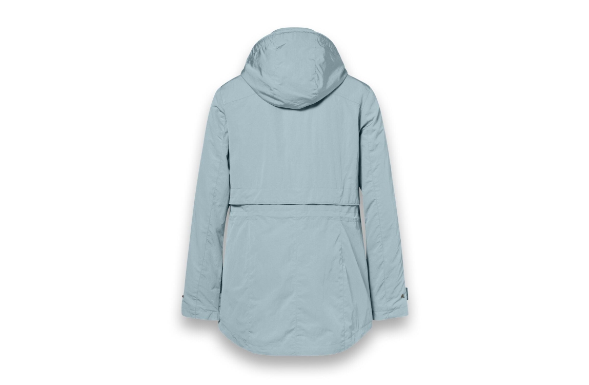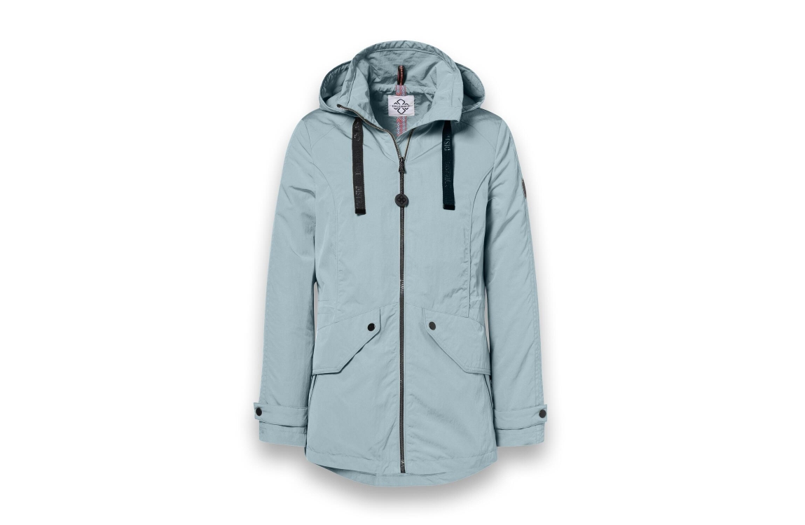 District jas Seasparkle LM28010251/777. Dit rechtvallende model heeft een (afneembare) capuchon, lange mouwen en sluit door middel van een rits met knopen. Deze blauw/groene jas van District is voorzien van zakken die sluiten door middel van een rits en heeft aan de binnenzijde koorden.