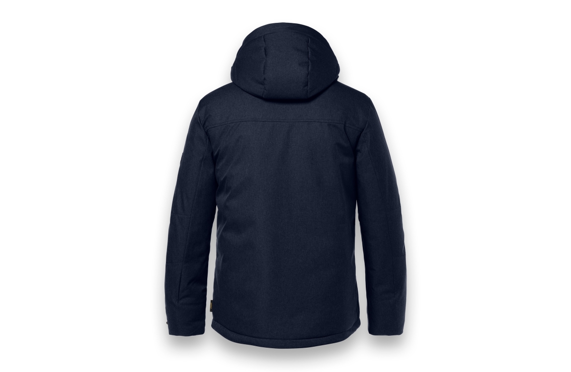 District WEDGE 502 navy. Dit rechtvallende model is voorzien van een opstaande kraag met capuchon en sluit doormiddel van een rits. Deze donker blauwe jas van District heeft aan de voorzijde twee ritszakken, twee steekzakken en een mouwzak. Dit model heeft een binnenzak.