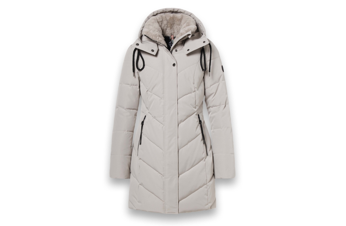 District ZODIAC 216 Moonrock winterjas. Dit rechtvallende model heeft een (afneembare) capuchon, lange mouwen en sluit door middel van een rits. Deze beige winterjas van District beschikt over een waterafstotende coating. Dit model beschikt over verschillende jaszakken en trekkoordjes aan de voorzijde.