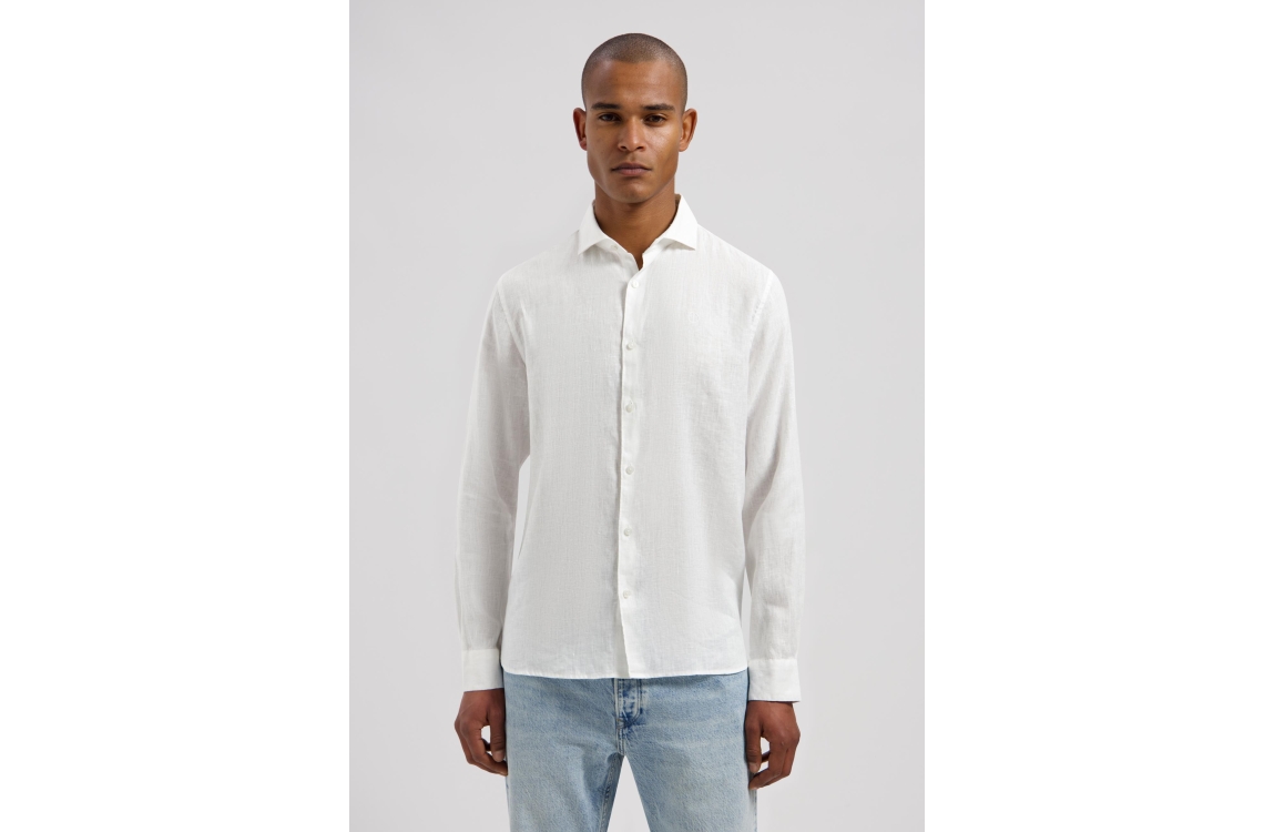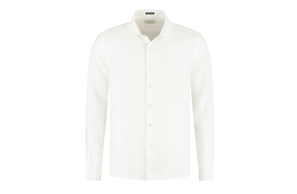 Dstrezzed Jagger Shirt 100 White. Dit rechtvallende model is voorzien van een kraag en heeft lange mouwen. Deze witte blouse van Dstrezzed sluit door middel van knopen aan de voorzijde. Dit model is gemaakt van linnen.