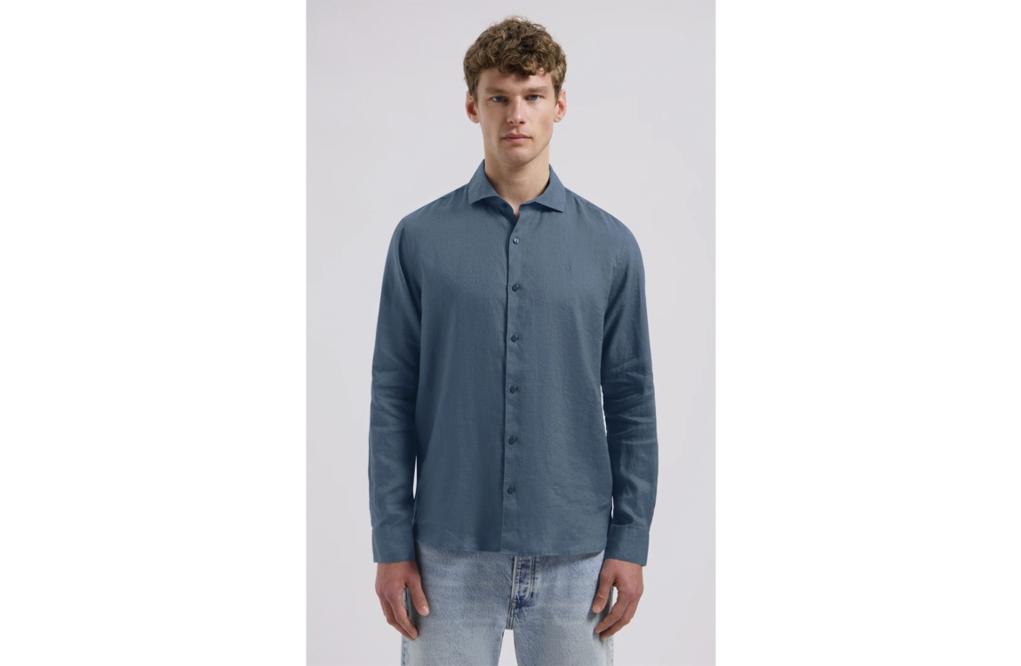 Dstrezzed overhemd Jagger shirt 303710. Dit rechtvallende model is voorzien van een kraag en heeft lange mouwen afgewerkt met een split en knopen. Dit blauwe overhemd van Dstrezzed sluit aan de voorzijde door middel van knopen.