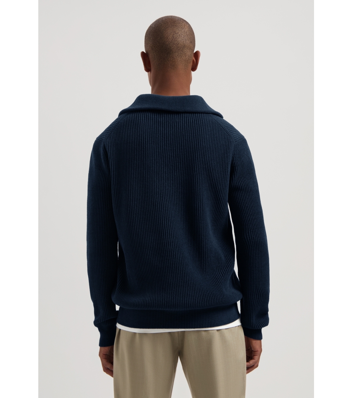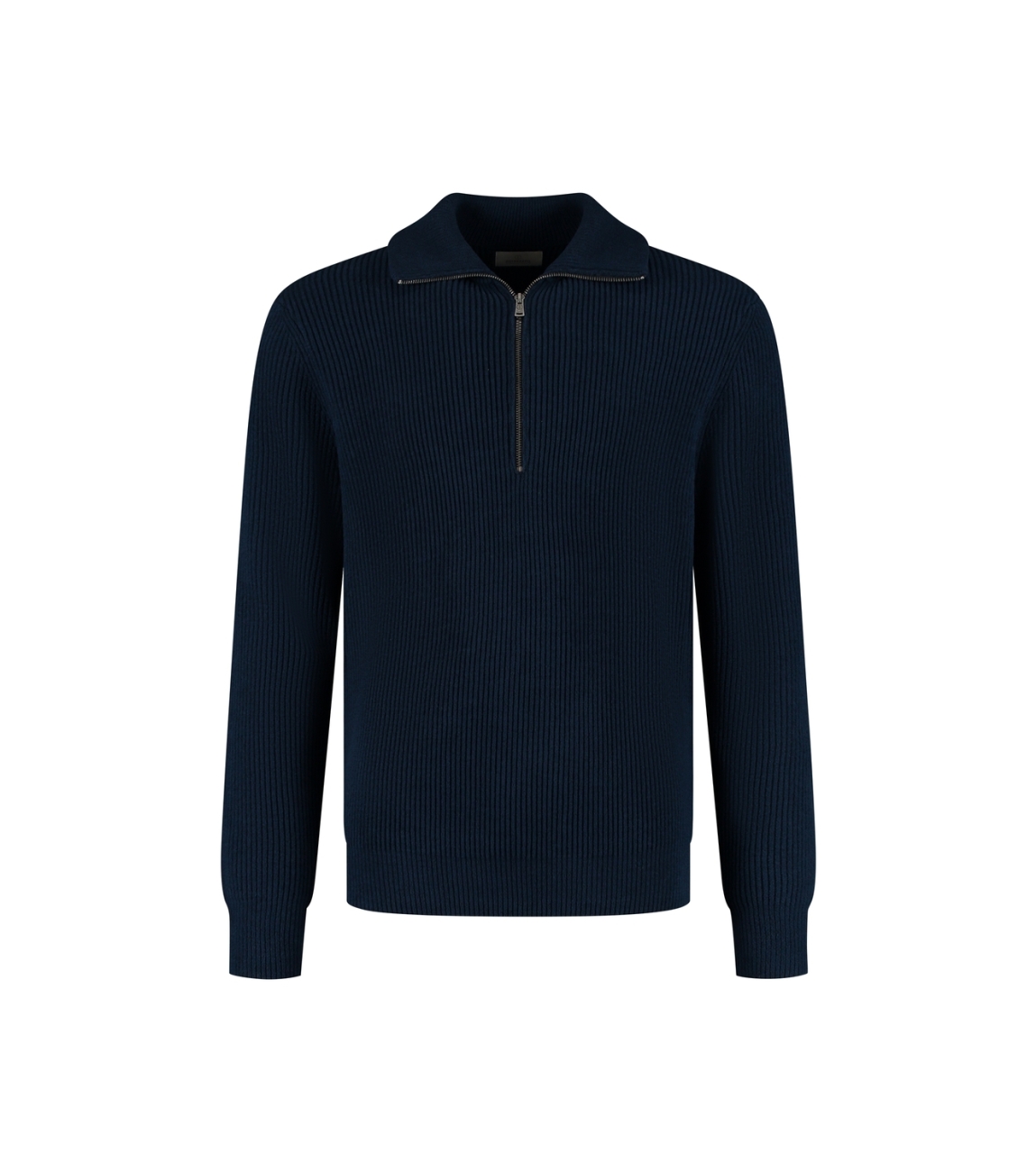 Dstrezzed Josiah Skipper pullover 405708-AW25. Dit rechtvallend model heeft een ronde hals met rits en lange mouwen. Deze blauwe pullover van Dstrezzed is uitgevoerd in een structuur en afgewerkt met elastische boorden aan de onderzijde.