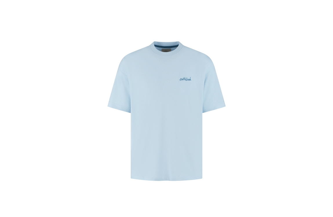 Dstrezzed lasse graphic tee 203524. Dit rechtvallend model is voorzien van een ronde hals en heeft korte mouwen. Deze blauwe T-shirt van Dstrezzed is bewerkt met het logo aan de voorzijde en met een donkerblauw geborduurd backprint op de achterzijde.