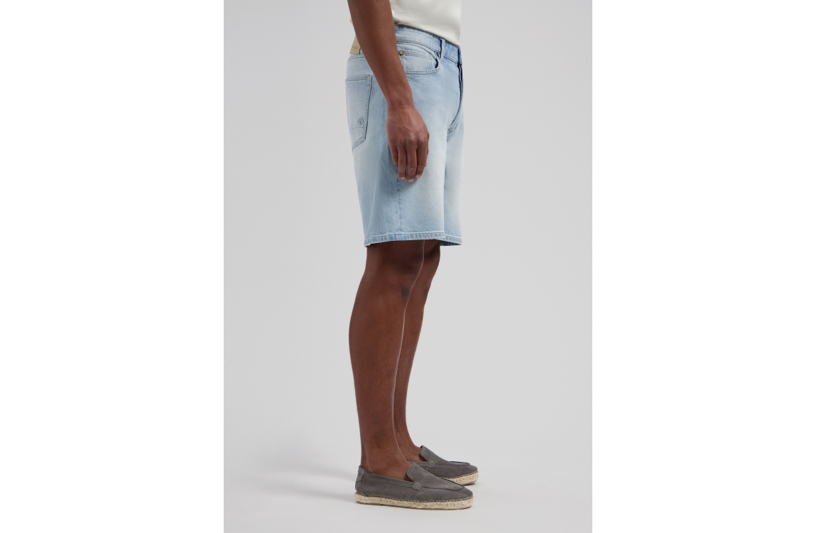 Dstrezzed Logan short 561212. Dit wide fit model sluit door middel van een knoop en een rits. Deze blauwe denim short van Dstrezzed is voorzien van 5-pocket broekzakken en beschikt over ceintuurlussen.