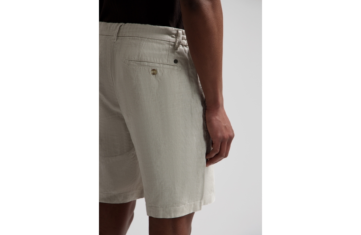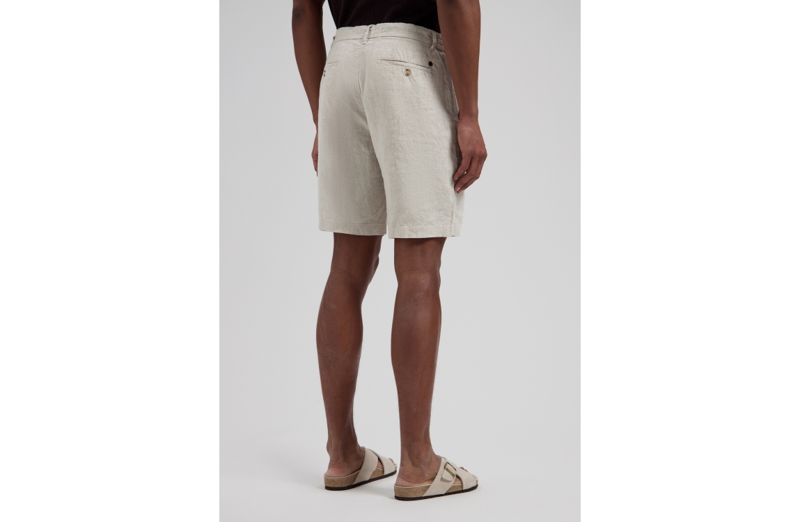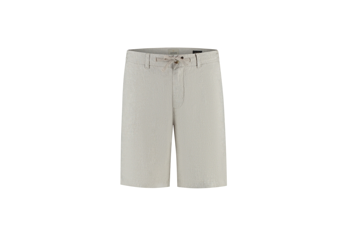 Dstrezzed Logan beach shorts 515558-SS26. Dit rechtvallend model sluit door middel van een knoop, rits en trekkoorden afgewerkt met ceintuurlussen. Deze zandkleurige linnen short van Dstrezzed beschikt over twee steekzakken aan de voorzijde en twee paspelzakken met knoop aan de achterzijde.