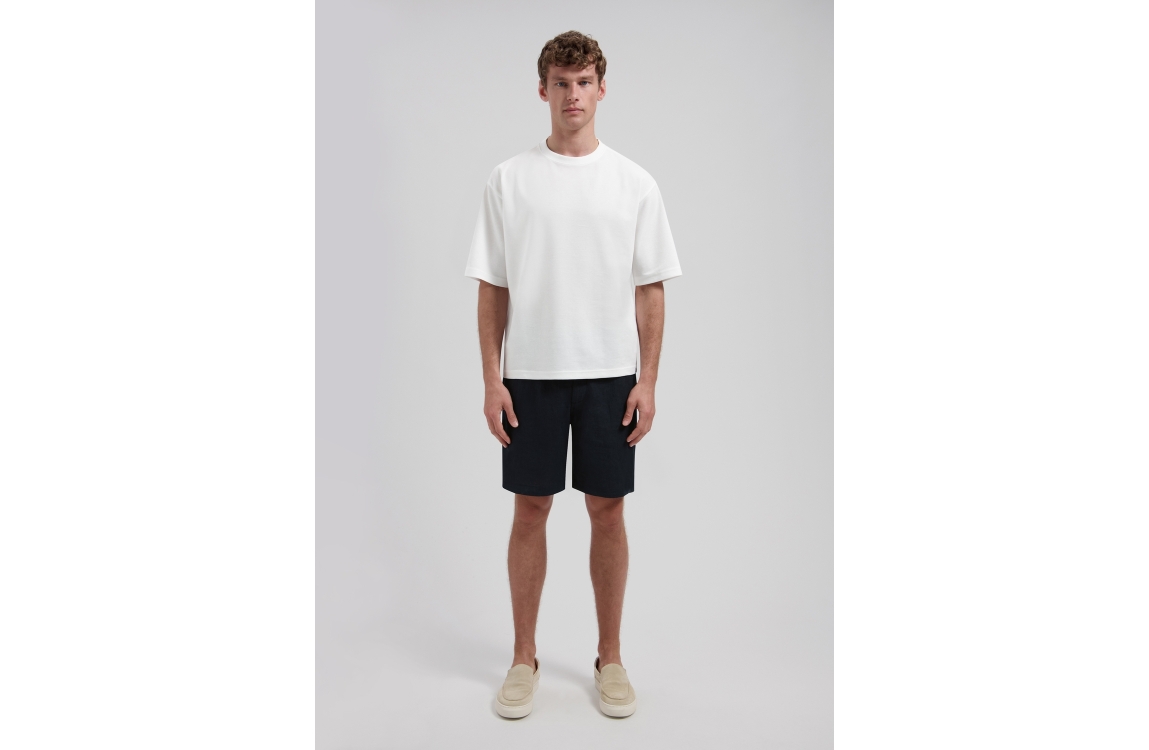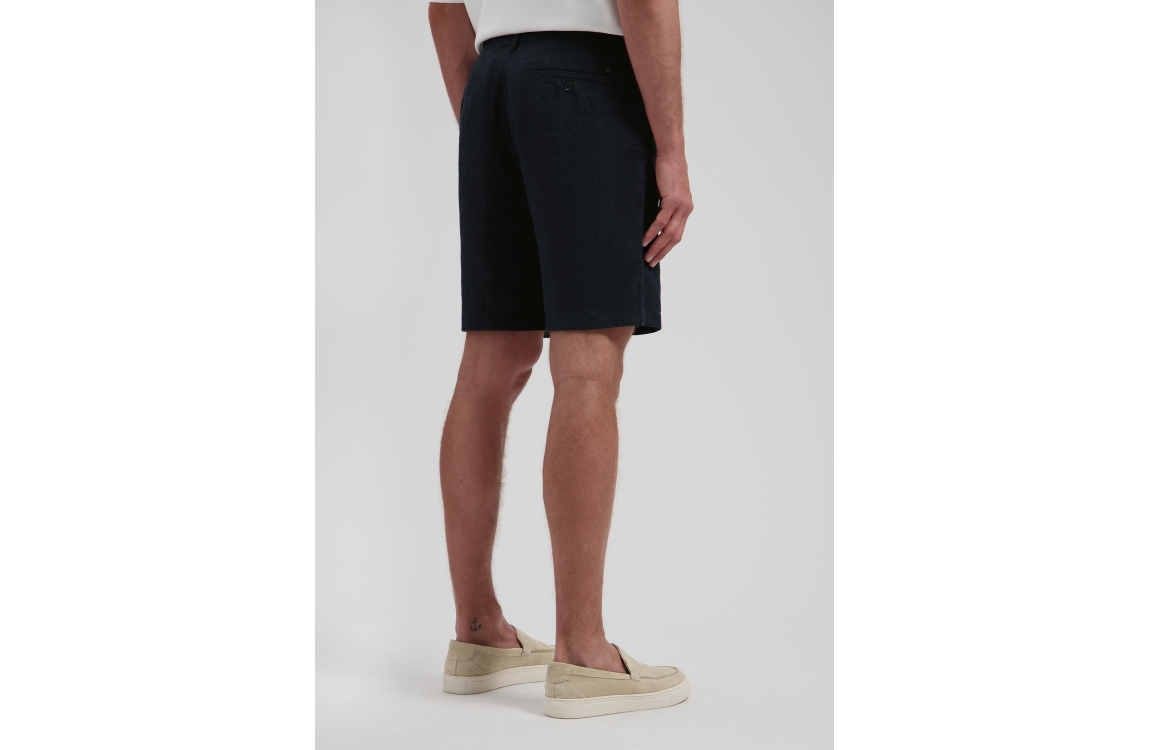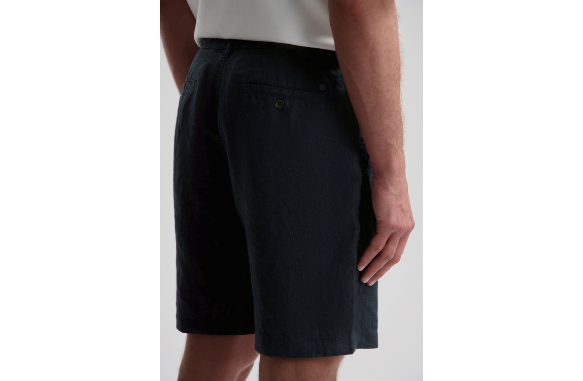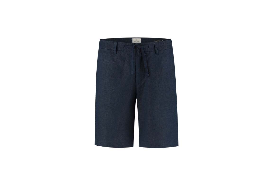 Dstrezzed Logan beach shorts 515558-SS26. Dit rechtvallend model sluit door middel van een knoop, rits en trekkoorden afgewerkt met ceintuurlussen. Deze navykleurige linnen short van Dstrezzed beschikt over twee steekzakken aan de voorzijde en twee paspelzakken met knoop aan de achterzijde.