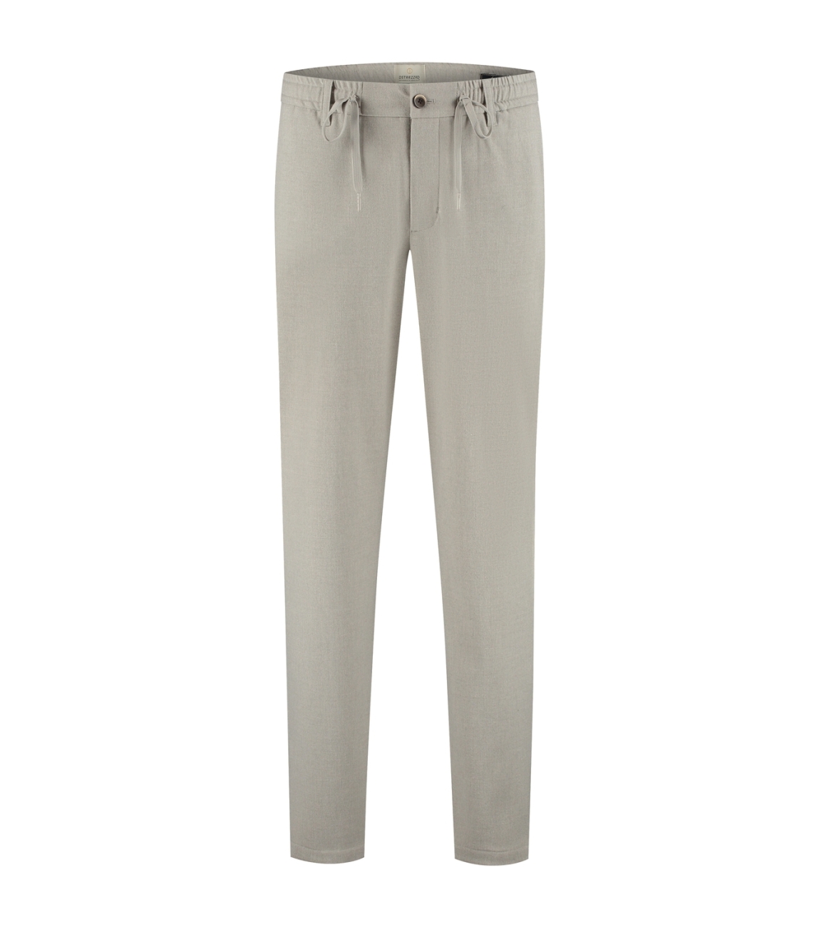 Dstrezzed pantalon Logan Flannel 501978 831. Dit regular fit model sluit met een knoop- en ritssluiting, en heeft een trekkoord in de elastische tailleband met ceintuurlussen. Deze lichtgrijze pantalon van Dstrezzed is voorzien van twee schuine steekzakken aan de voorzijde en twee paspelzakken aan de achterzijde.