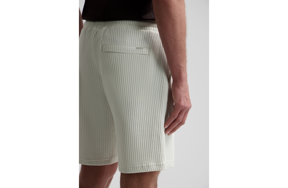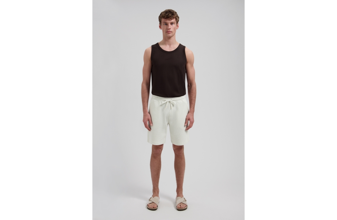 Dstrezzed short 515630 107. Dit relaxed fit model sluit door middel van een elastische boord met trekkoord. Deze off white short van Dstrezzed is uitgevoerd met een wafelstructuur en is voorzien van twee steekzakken aan de voorzijde en een paspelzak aan de achterzijde.