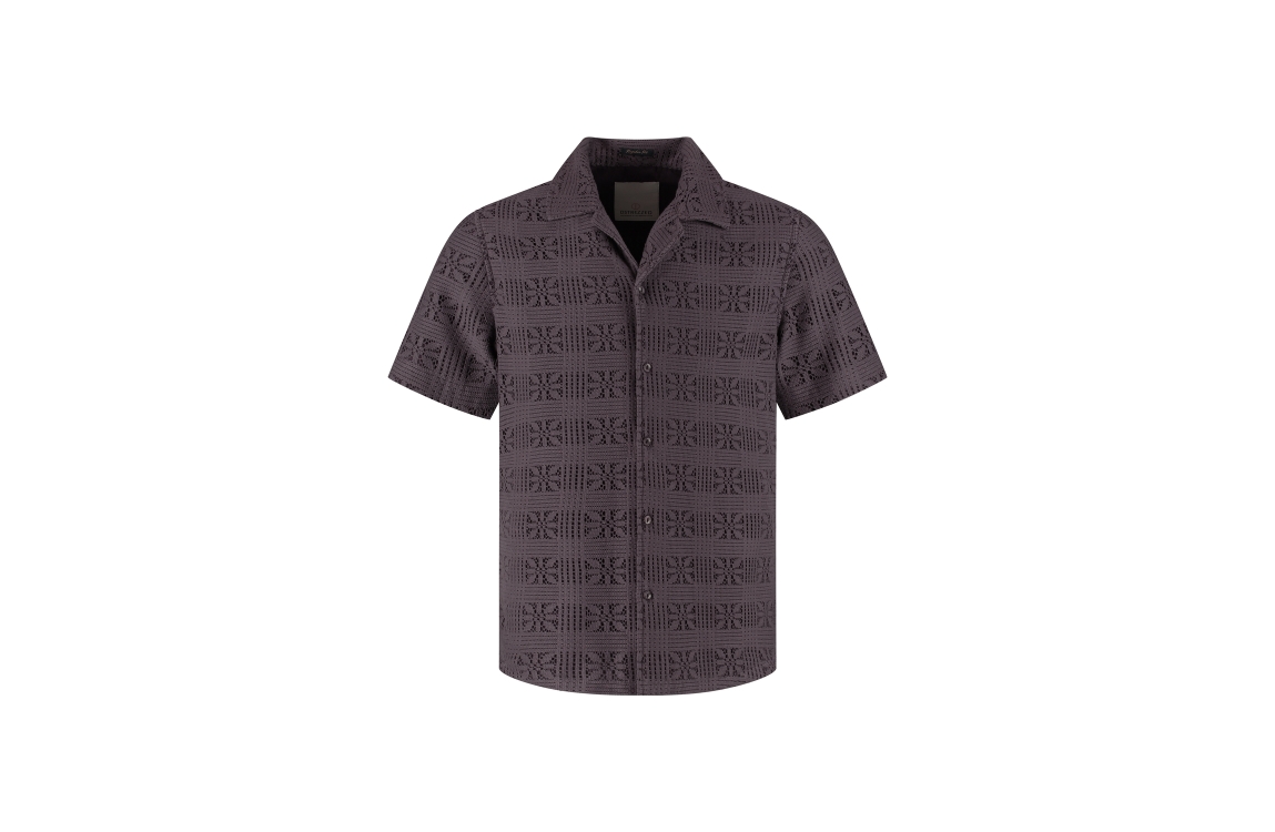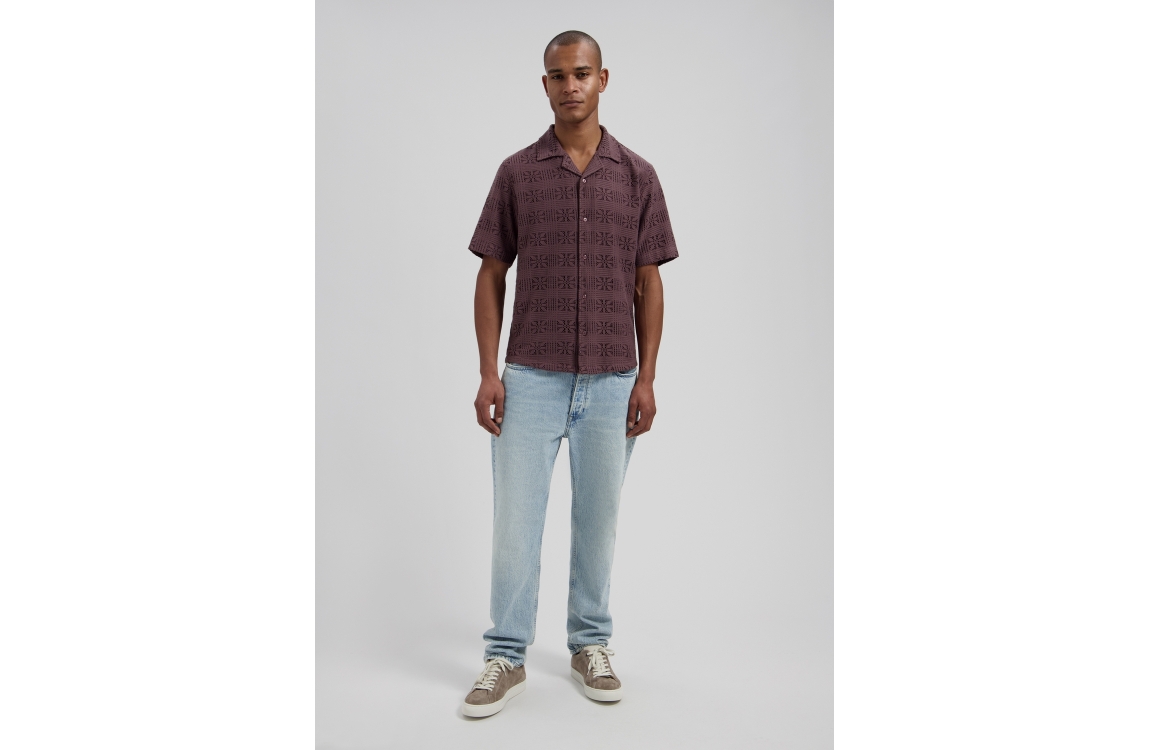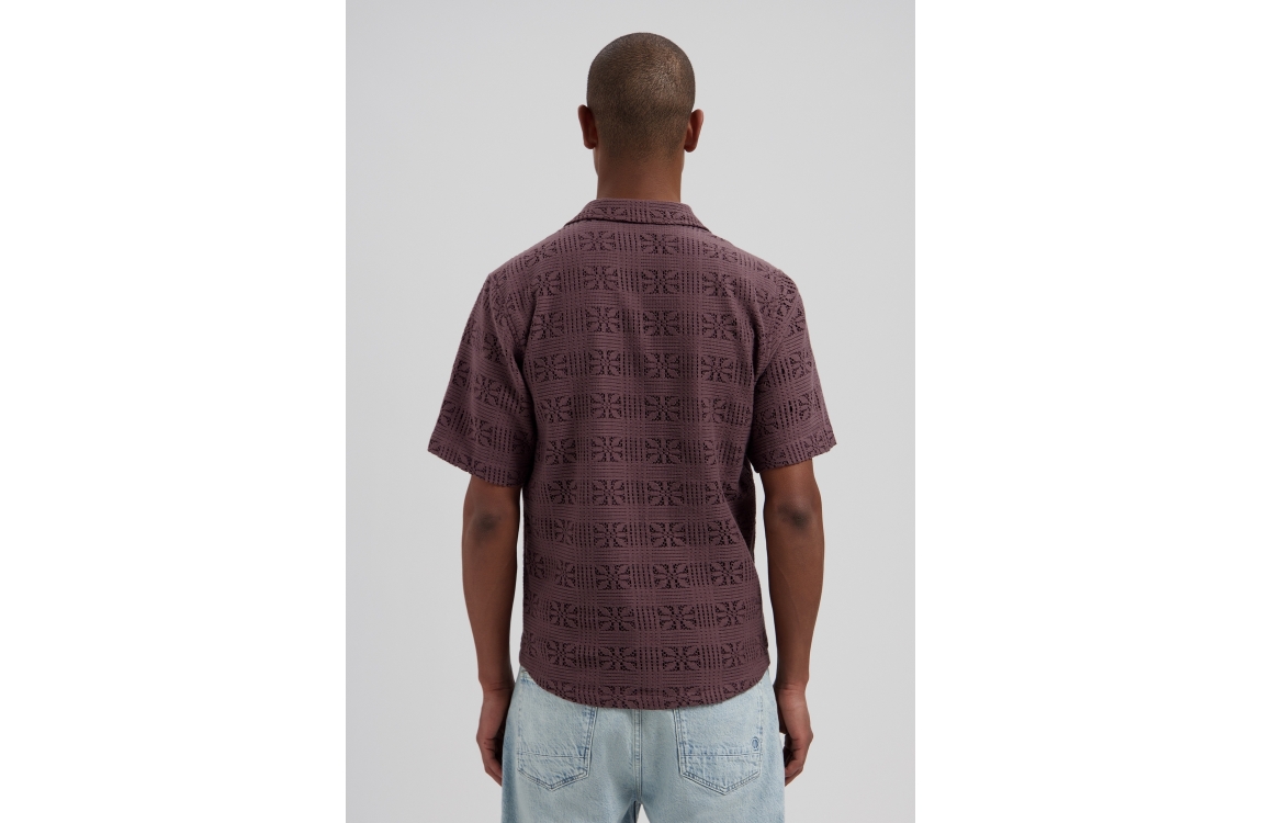 Dstrezzed Luca overhemd 311519. Dit wide fit model heeft een kraag, korte mouwen en sluit door middel van knopen. Dit paarse overhemd van Dstrezzed is uitgevoerd in een broderie materiaal en is gevoerd.