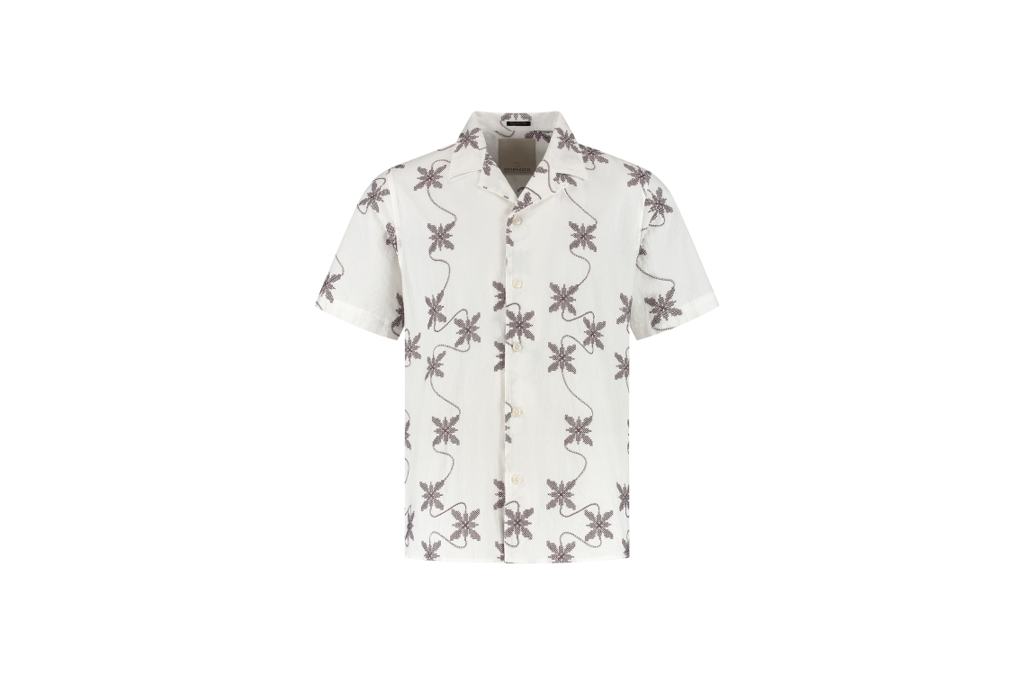 Dstrezzed Max Resort overhemd 311513. Dit wide fit model heeft een openstaande kraag, korte mouwen en sluit door middel van knopen. Dit witte overhemd van Dstrezzed is voorzien van paarse broderie bloemen en is uitgevoerd in een linnen look a like.
