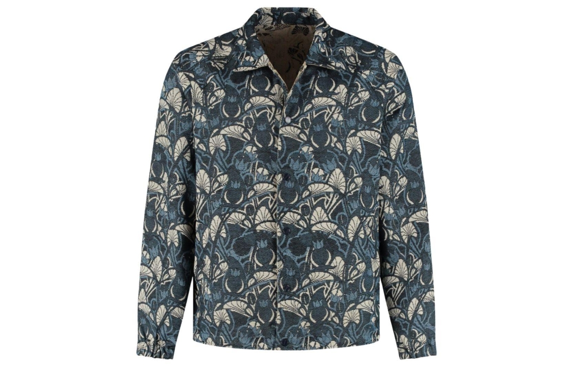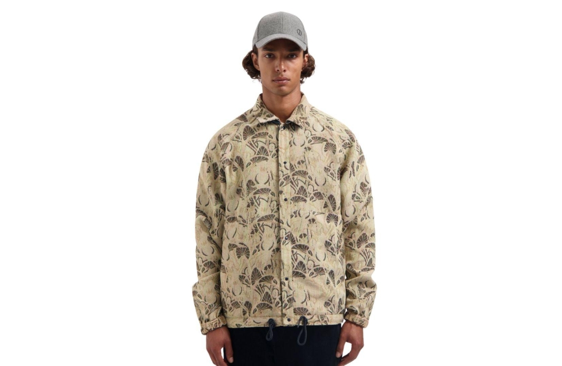Dstrezzed Sawyer Jacket 151016-AW25. Dit oversized model heeft een kraag, lange mouwen en is uitgevoerd in een grafische print. De jas van Dstrezzed is volledig reversible (omkeerbaar) en uitgevoerd in de kleuren blauw en zandkleur. Aan de voorzijde sluit dit model met knopen en is het voorzien van twee schuine knoopzakken.