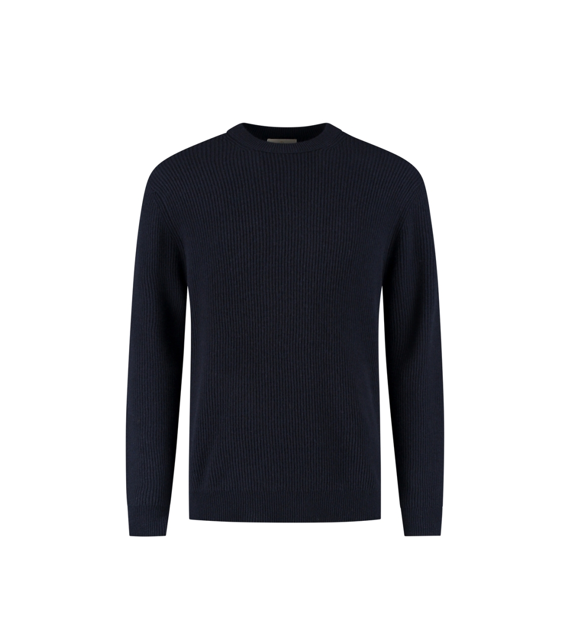 Dstrezzed Stef rib Crewneck 405951. Dit rechtvallend model heeft een ronde hals en lange mouwen. Deze blauwe crewneck van Dstrezzed is uitgevoerd in een structuur en afgewerkt met elastische boorden aan de onderzijde.