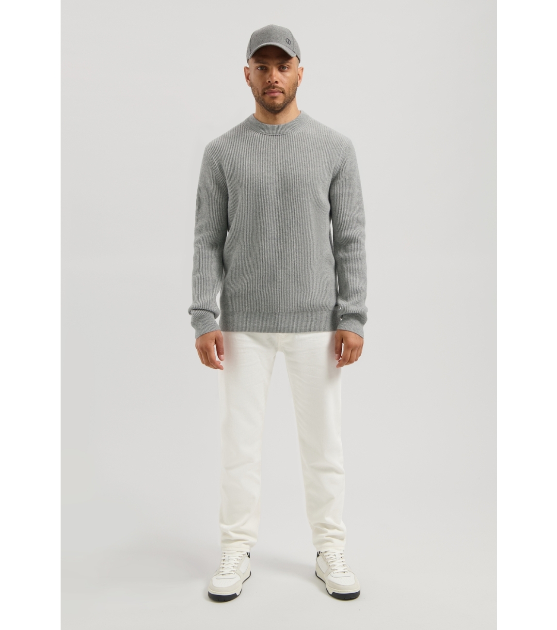 Dstrezzed Stef rib Crewneck 405951. Dit rechtvallend model heeft een ronde hals en lange mouwen. Deze grijze crewneck van Dstrezzed is uitgevoerd in een structuur en afgewerkt met elastische boorden aan de onderzijde.