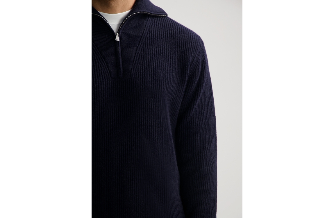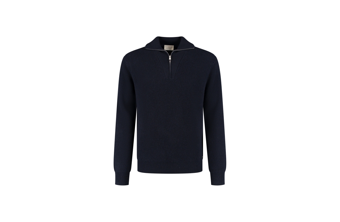 Dstrezzed Stefan Skipper pullover 405939. Dit rechtvallend model heeft een ronde hals met rits en lange mouwen. Deze blauwe pullover van Dstrezzed is uitgevoerd in een structuur en afgewerkt met elastische boorden aan de onderzijde.