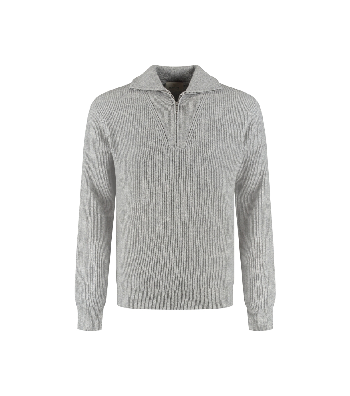 Dstrezzed Stefan Skipper pullover 405939. Dit rechtvallend model heeft een ronde hals met rits en lange mouwen. Deze grijze pullover van Dstrezzed is uitgevoerd in een structuur en afgewerkt met elastische boorden aan de onderzijde.
