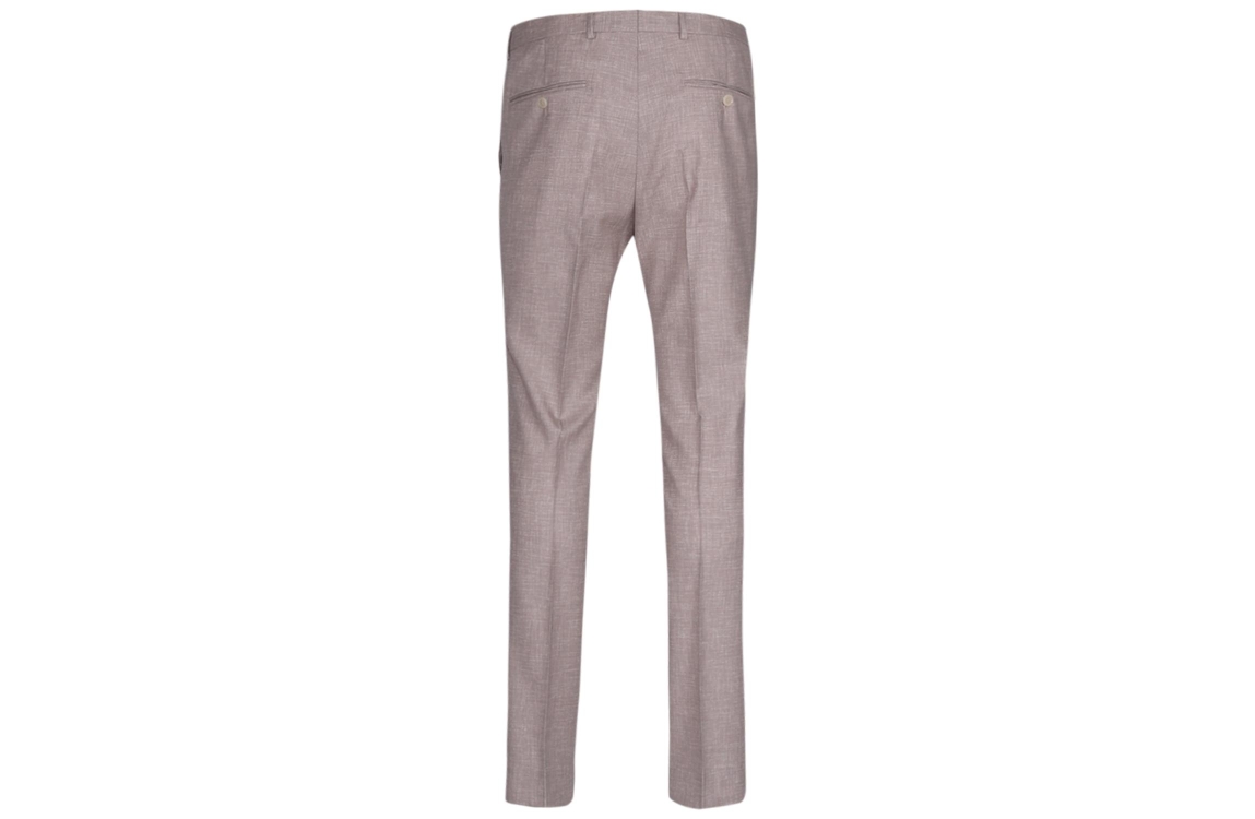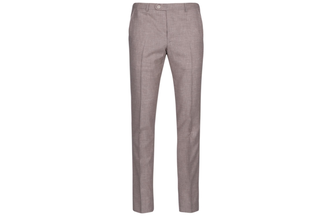 Dutch Dandies trouwpak DD255. Amalfi Dit tweedelige zandkleurige pak bestaat uit een pantalon en een blazer. Dit item is slim fit en heeft een geweven patroon. De pantalon sluit door middel van knopen, een rits en is voorzien van ceintuurlussen. Daarnaast beschikt de pantalon van Dutch Dandies over twee schuine steekzakken op het voorpand en twee paspelzakken met knoop op de achterzijde. Verder beschikt deze set over een gevoerde colbert. Dit item sluit door middel van twee knopen, beschikt over een reverskraag en is onderaan de lange mouwen afgewerkt met knoopjes. Dit colbert van Dutch Dandies beschikt over twee klepzakken aan de voorzijde, een borstzak en verschillende zakken aan de binnenzijde. Dit trouwpak is uitgevoerd in een gemeleerde kwaliteit