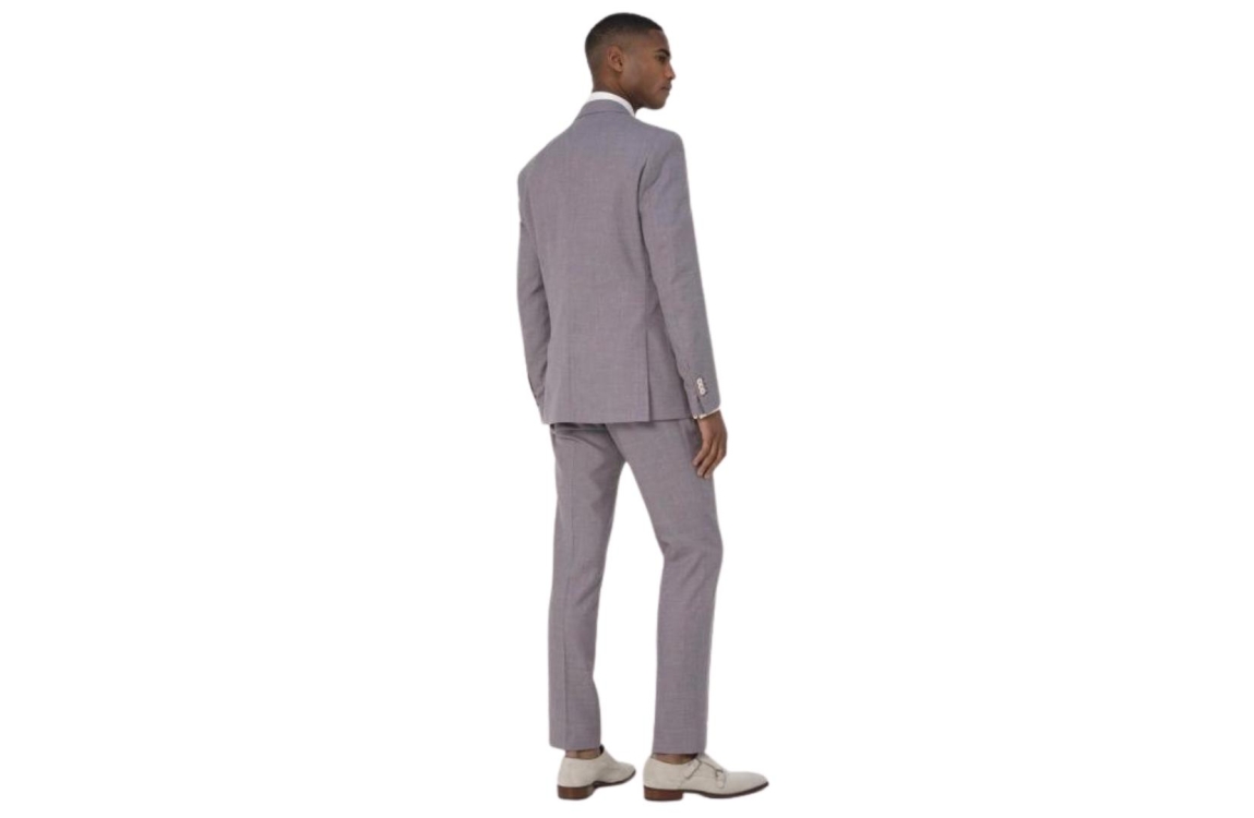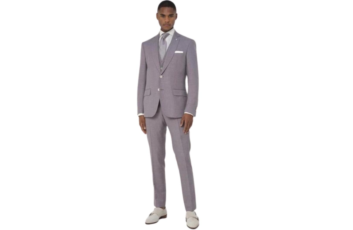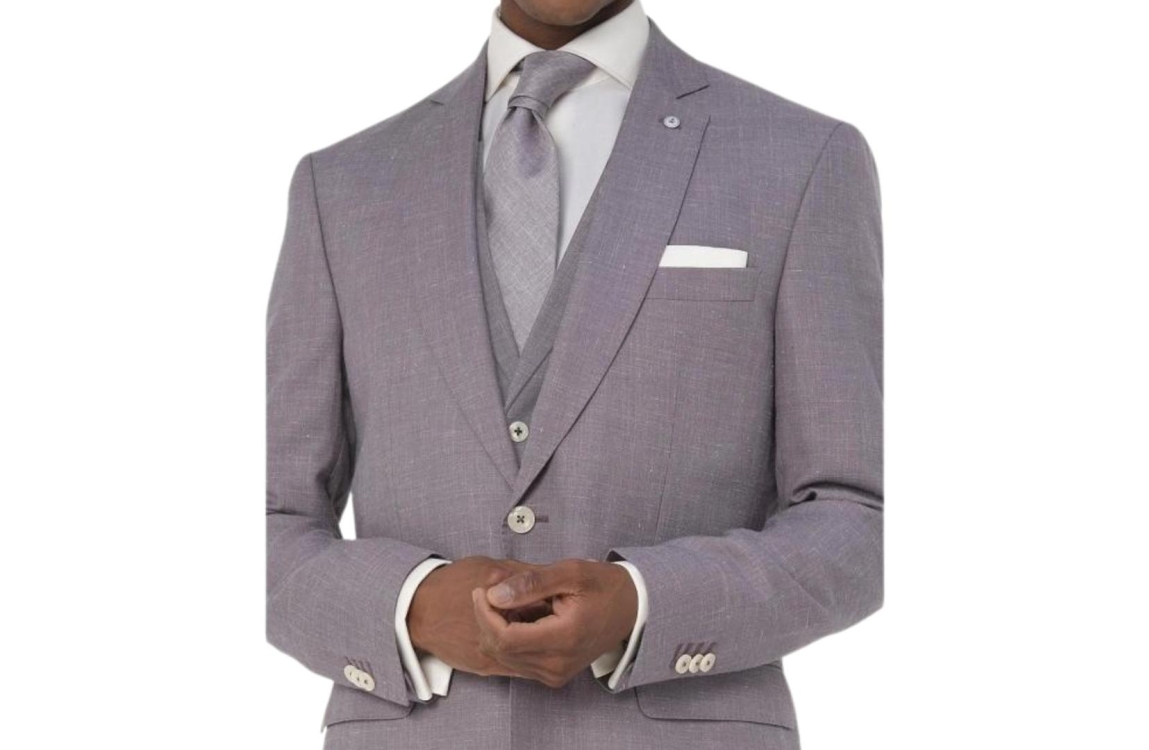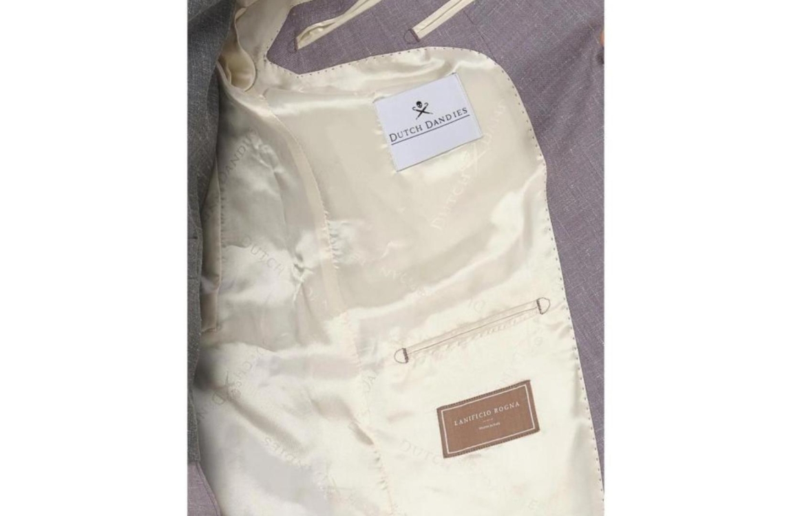 Dutch Dandies trouwpak DD345 Lilas. Dit driedelige lila pak bestaat uit een pantalon, gilet en een blazer. Dit item is slim fit en heeft een geweven patroon. De pantalon sluit door middel van knopen, een rits en is voorzien van ceintuurlussen. Daarnaast beschikt de pantalon van Dutch Dandies over twee schuine steekzakken op het voorpand en twee paspelzakken met knoop op de achterzijde. De gevoerde gilet sluit door middel van knopen, heeft een kraag en is voorzien van twee paspelzakken op het voorpand. Als laatste beschikt deze set nog over een gevoerde colbert. Dit item sluit door middel van twee knopen, beschikt over een reverskraag en is onderaan de lange mouwen afgewerkt met knoopjes. Deze colbert van Dutch Dandies beschikt over twee klepzakken aan de voorzijde, een borstzak en verschillende zakken aan de binnenzijde. Dit trouwpak is uitgevoerd in een gemeleerde kwaliteit