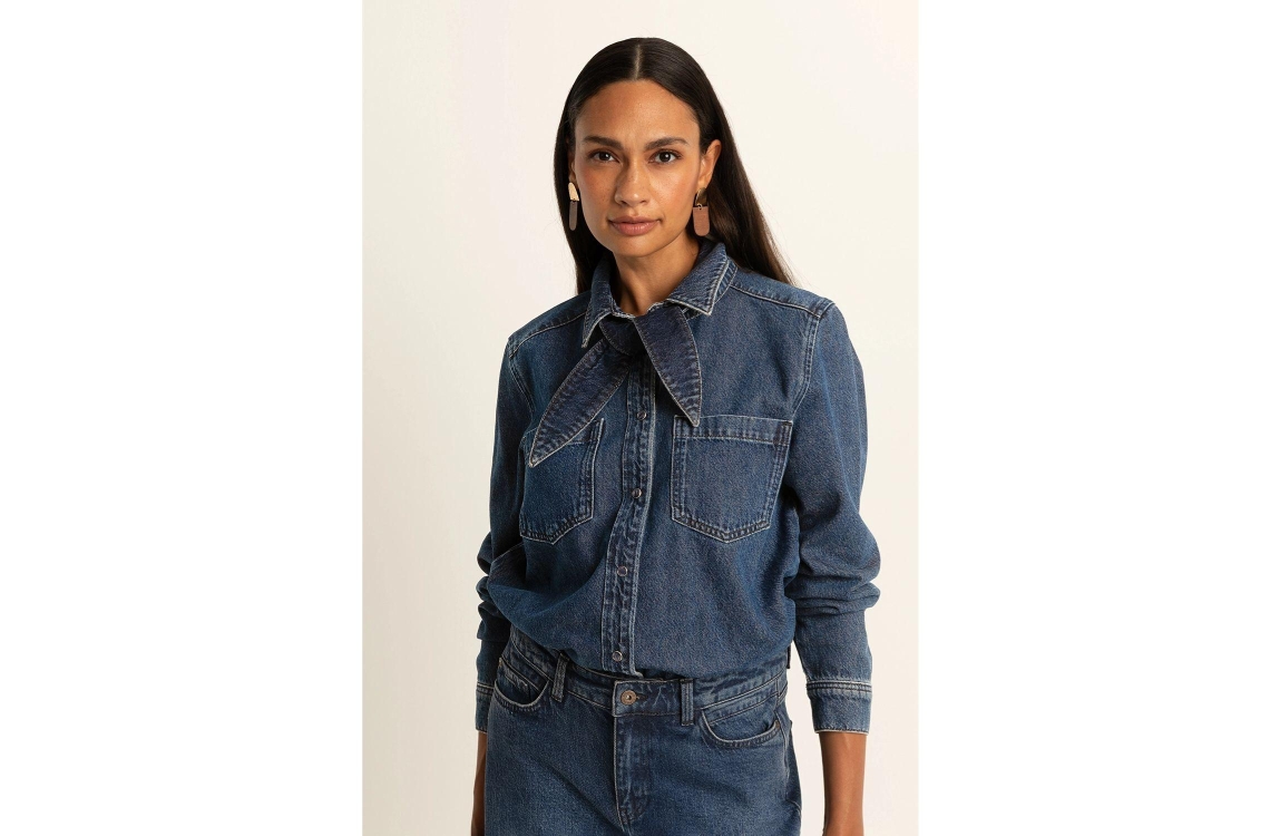 Expresso Blouse denim with bow EX351 Dark blue denimExpresso Blouse denim with bow EX351 Dark blue denim