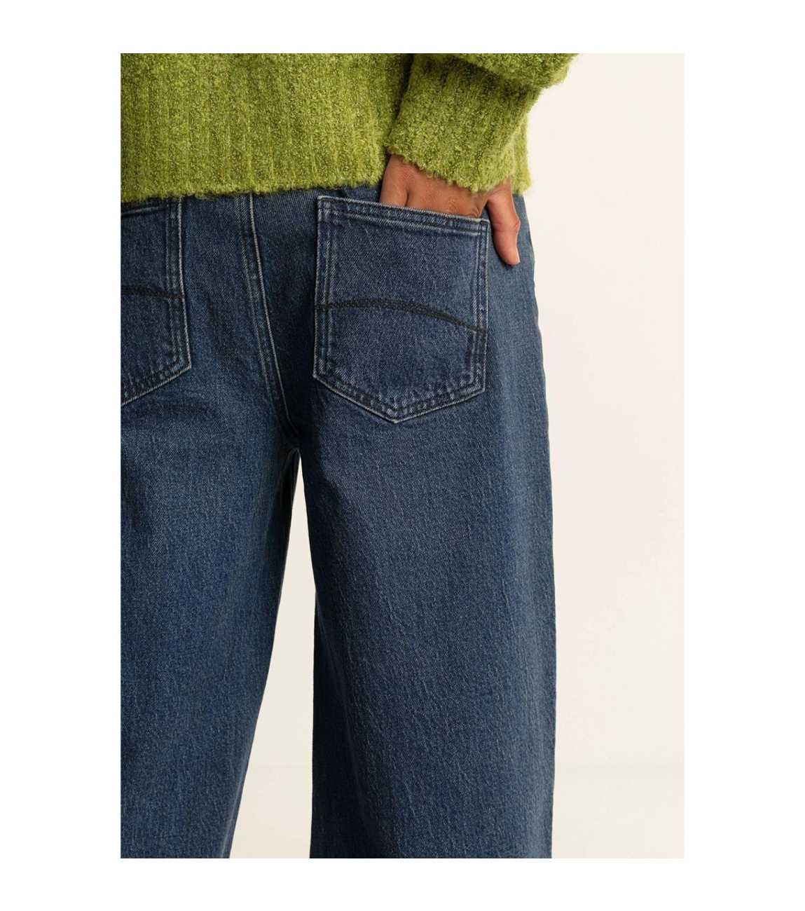 Expresso Jeans Rome high rise wide EX351 Dark blue denim. Dit wide leg model sluit door middel van een knoop en ritsaansluiting en heeft ceintuurlussen. Deze donkerblauwe jeans van Expresso beschikt over vijf-pocket zakken en heeft een hoge taille.