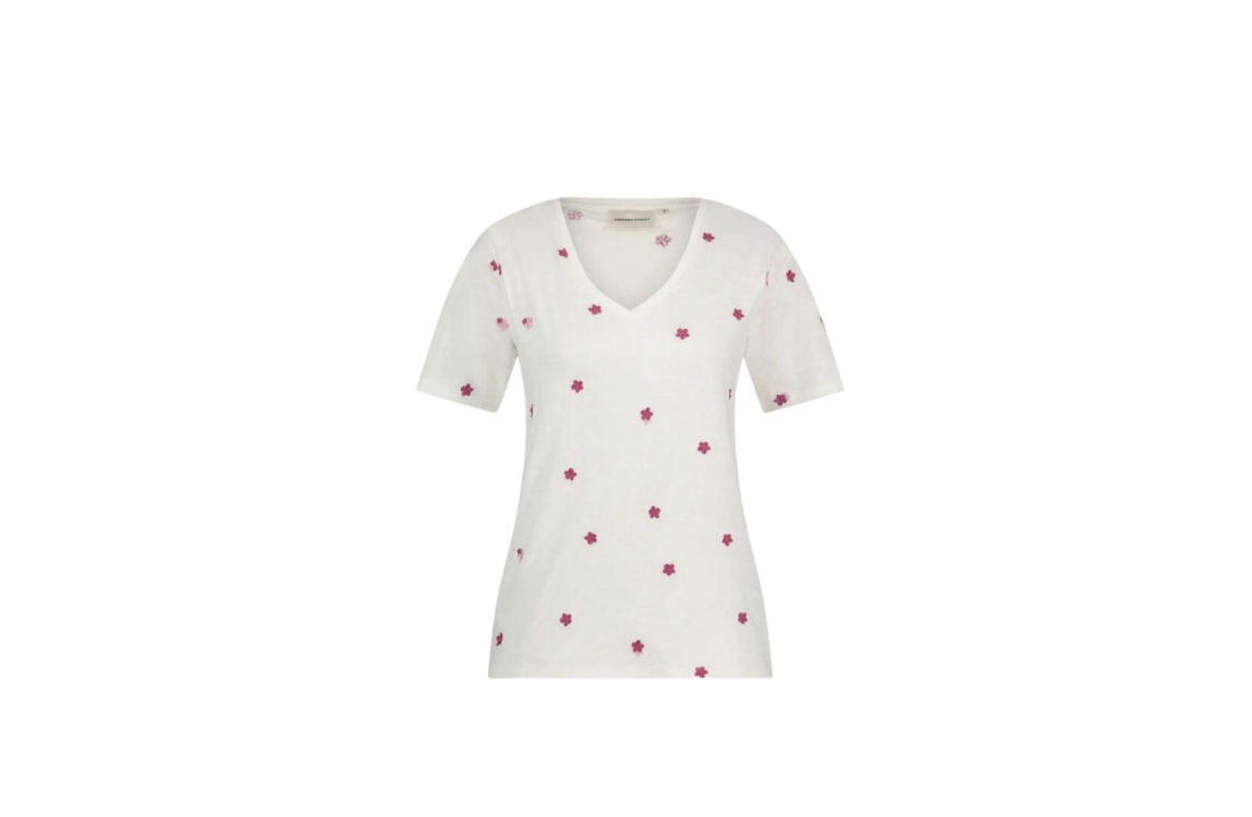 Fabienne Chapot Phill V-neck Pink Flower T-shirt 0053 Cream White/PinkFabienne Chapot Phill V-neck Pink Flower T-shirt 0053 Cream White/PinkFabienne Chapot Phill V-neck Pink Flower T-shirt 0053 Cream White/Pink