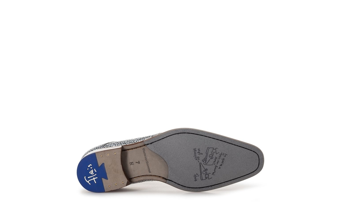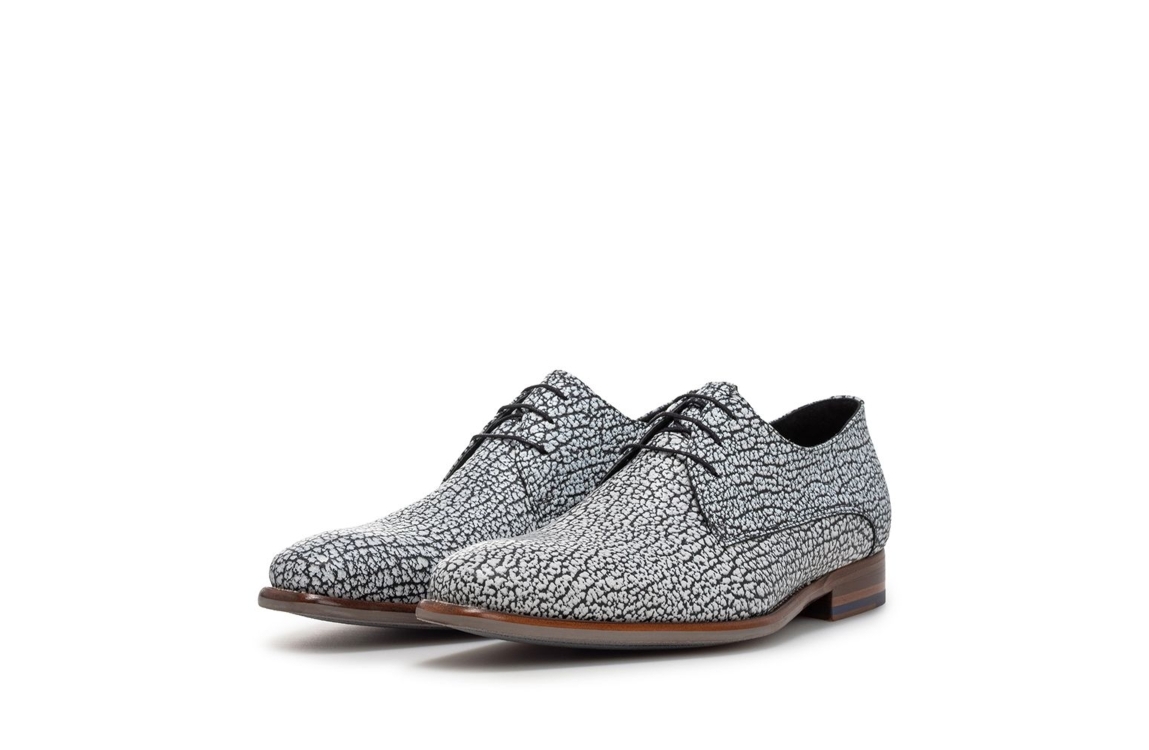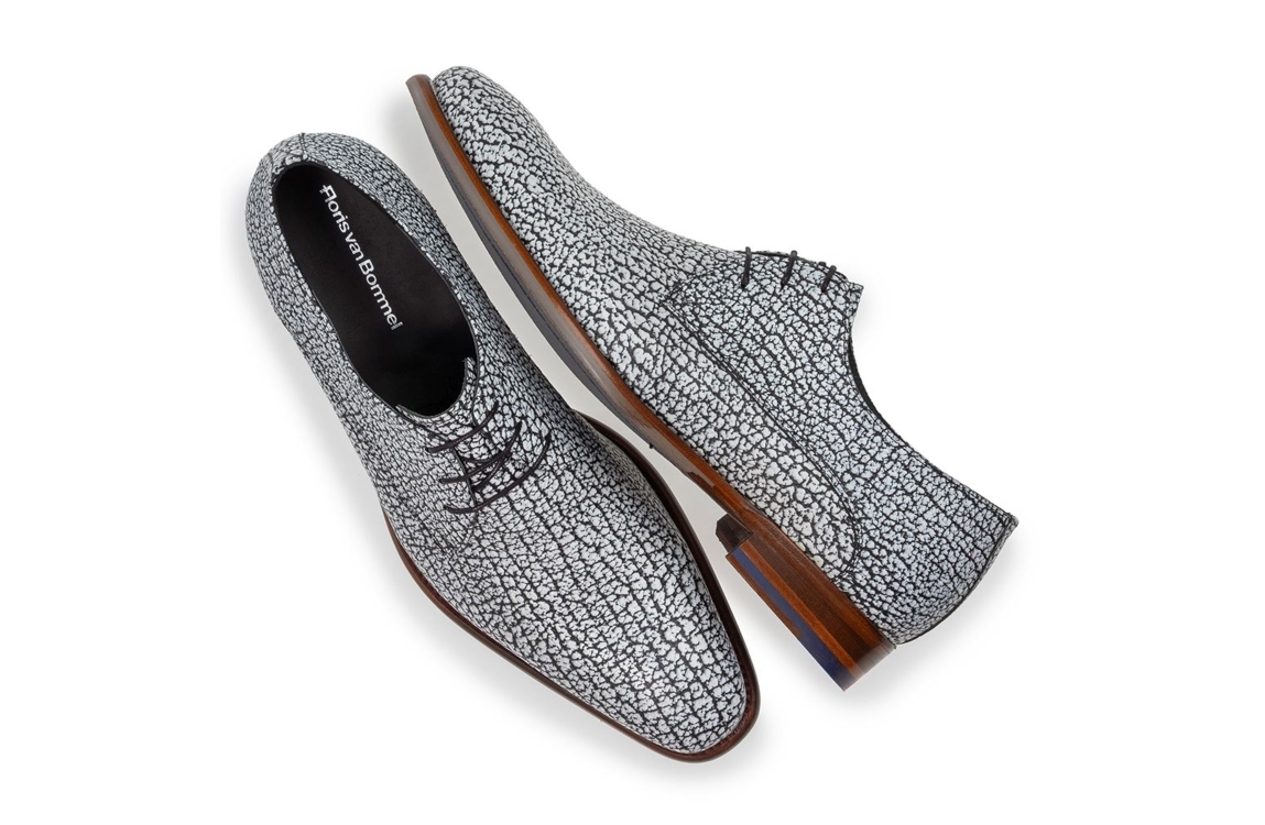 Floris van Bommel schoenen SFM-30262 10-03. Dit klassieke model is voorzien van een vetersluiting. Deze schoen van Floris van Bommel is bewerkt met een zwarte schub structuur en voorzien van een unieke zool.