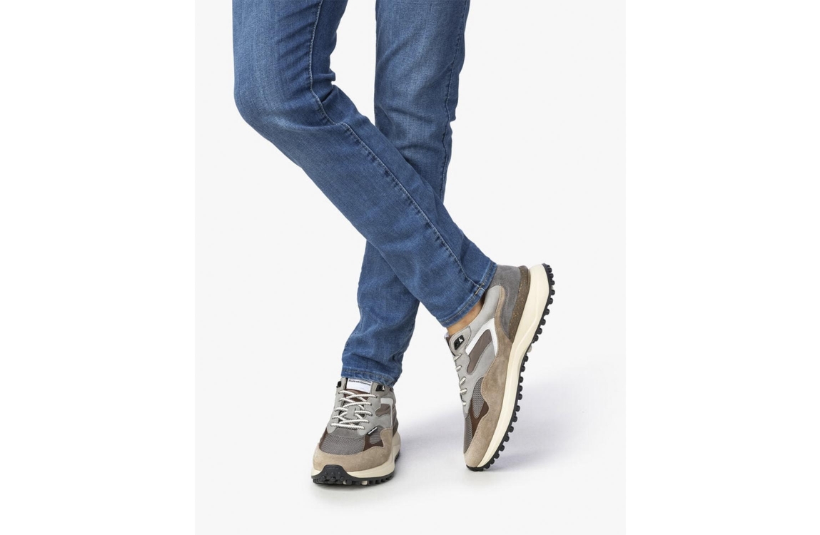 Floris van Bommel sneaker Noppi 18.31 SFM-10159-22-01. Dit sportieve model is voorzien een van grove 'noppen' zool en sluit door middel van veters. Deze bruin/grijze sneakers van Floris Van Bommel zijn uitgevoerd met verschillende materialen en kleuren. De binnenkant van de schoen is afgewerkt met kwalitatief hoogwaardige lederen voering en een uitneembaar voetbed.