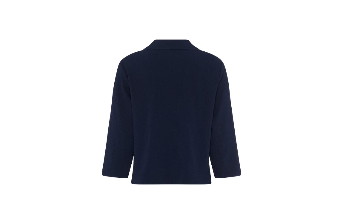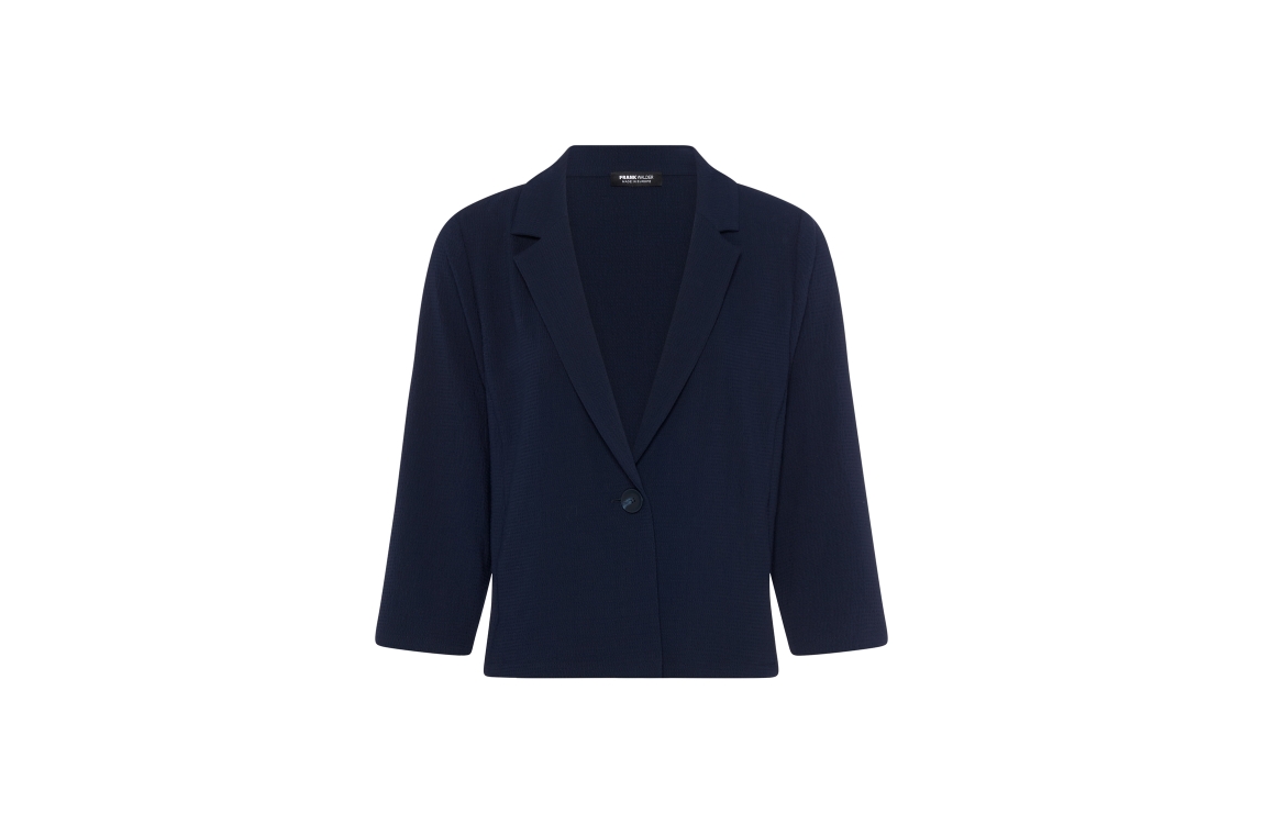 Frank Walder blazer NOS716335 598. Dit rechtvallende model heeft een reverskraag en driekwart mouwen. Deze donkerblauwe blazer van Frank Walder sluit aan de voorzijde door middel van een knoop en is voorzien van twee steekzakken.