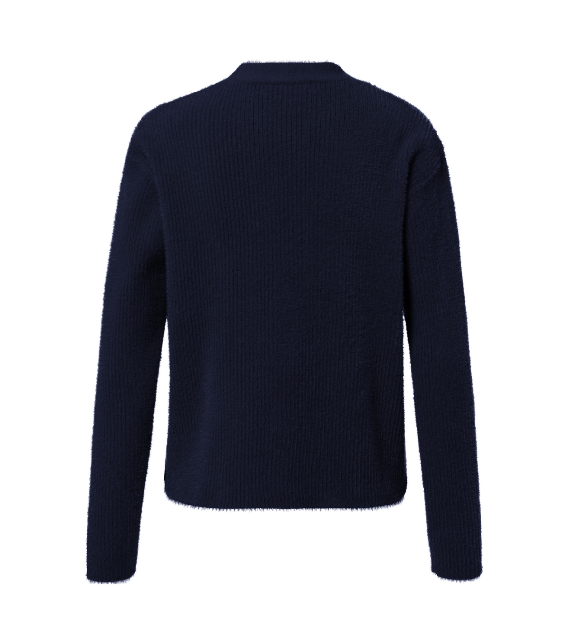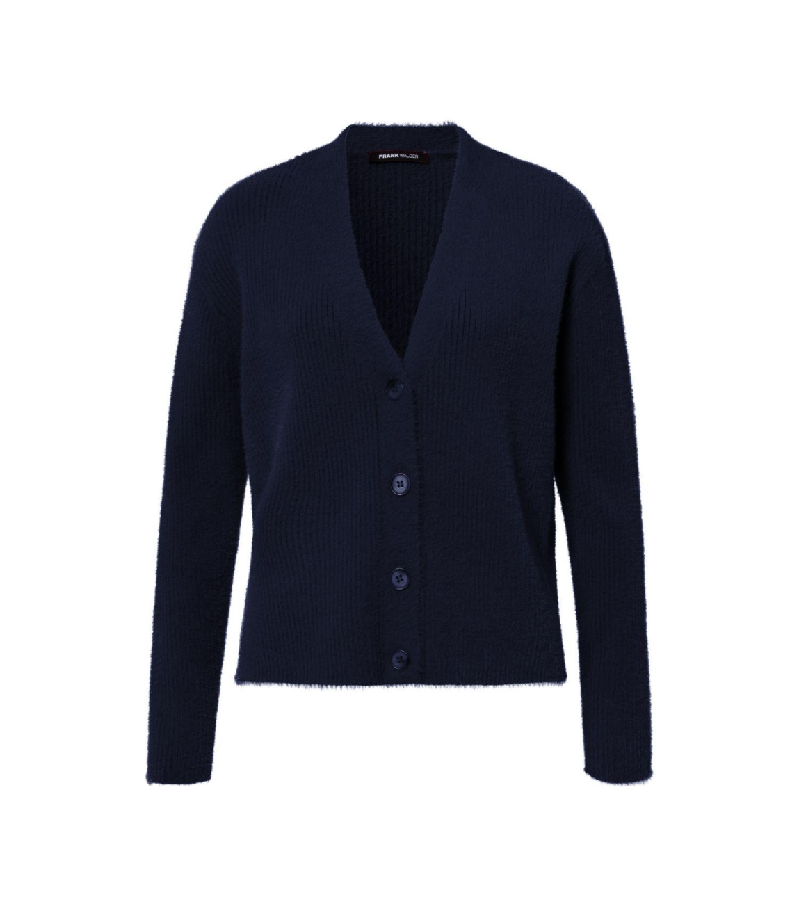 Frank Walder NOSStrick 598 Blue. Dit rechtvallende model is voorzien van een v-hals en heeft lange mouwen. Dit donker blauwe vest van Frank Walder sluit aan de voorzijde door middel van knopen.