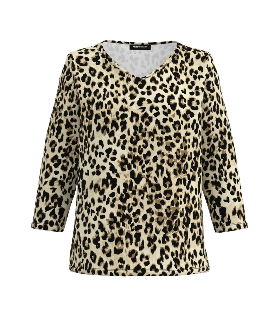 Frank Walder NOSTop/TShirt 642/086 Beige/brown. Dit rechtvallende model heeft een ronde hals en driekwart mouwen. Dit bruine shirt van Frank Walder is all-over bewerkt in panterprint. Dit model is uitgevoerd in stretch kwaliteit.
