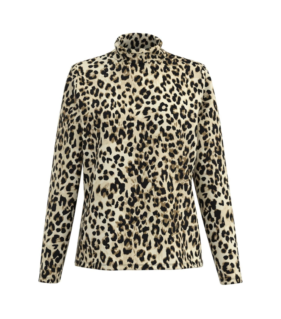 Frank Walder NOSTop/TShirt 642/086 Beige/brown. Dit rechtvallende model heeft een col en lange mouwen. Deze bruine top van Frank Walder is bewerkt met een leopard print.